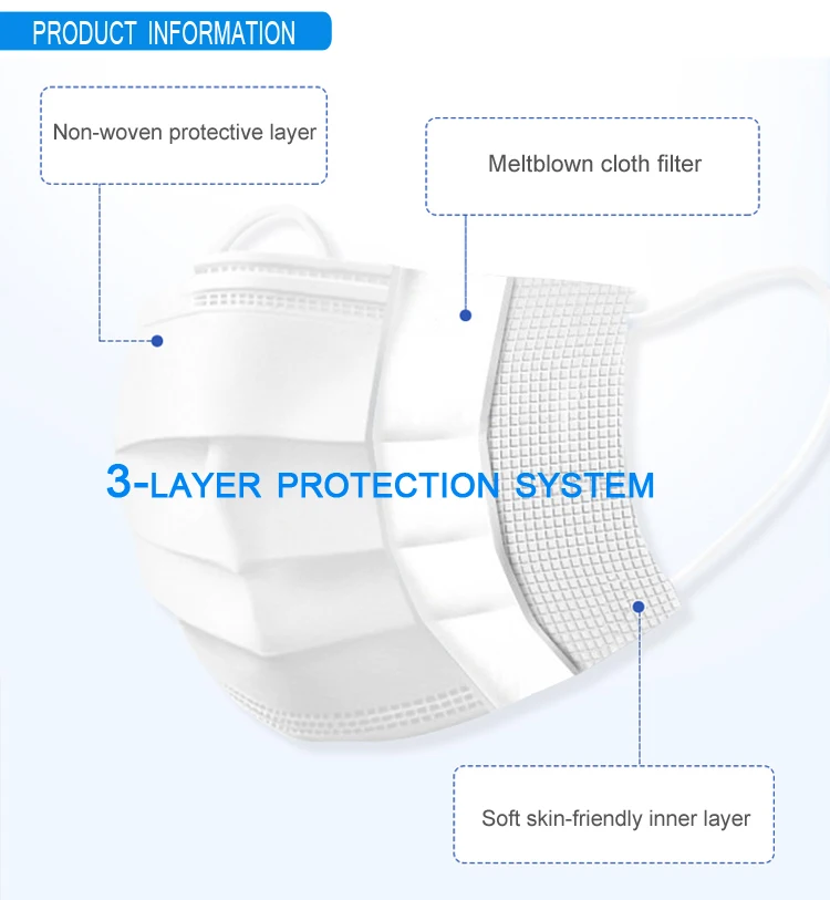 Одноразовые медицинские хирургические маски, Нетканые 3-слойные мед...