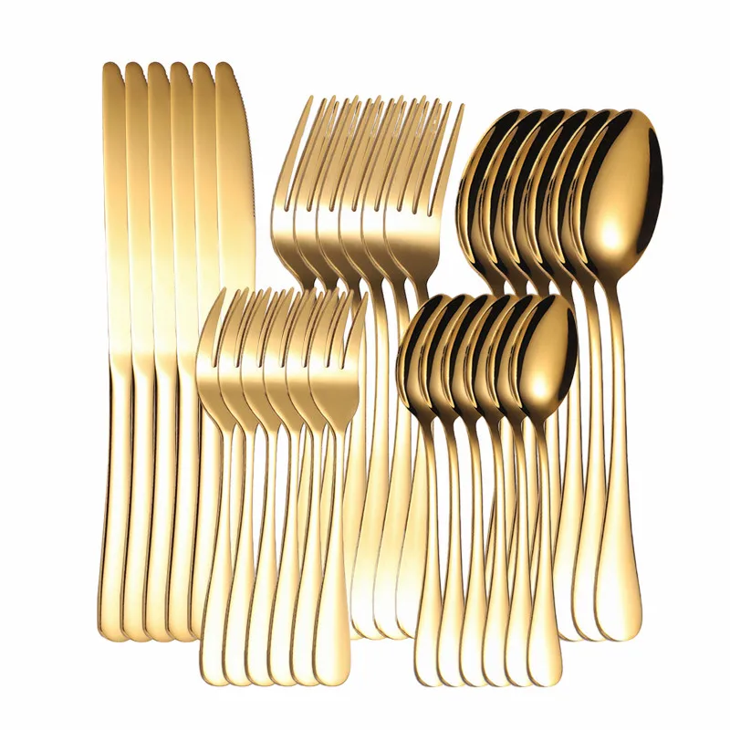 Набор золотых столовых приборов из нержавеющей стали 30 шт., нож посуда, вилка, ложка набор Европейской посуды