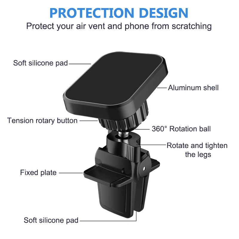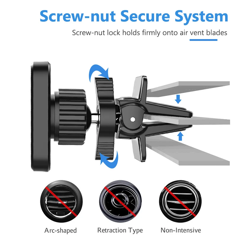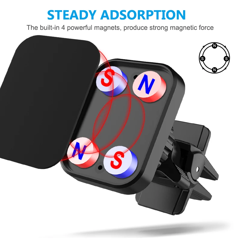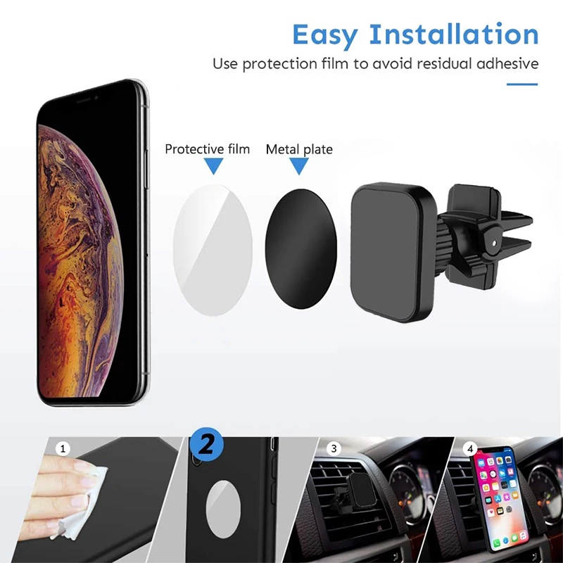 Универсальный магнитный автомобильный держатель для Xiaomi, Iphone 7, 8, 11, X, Xs, Samsung с поворотным замком и вентиляционным отверстием