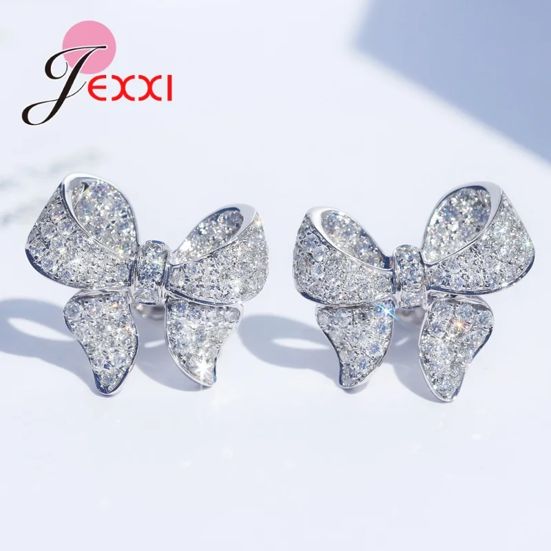Подлинные серьги-гвоздики в форме банта из стерлингового серебра 92...
