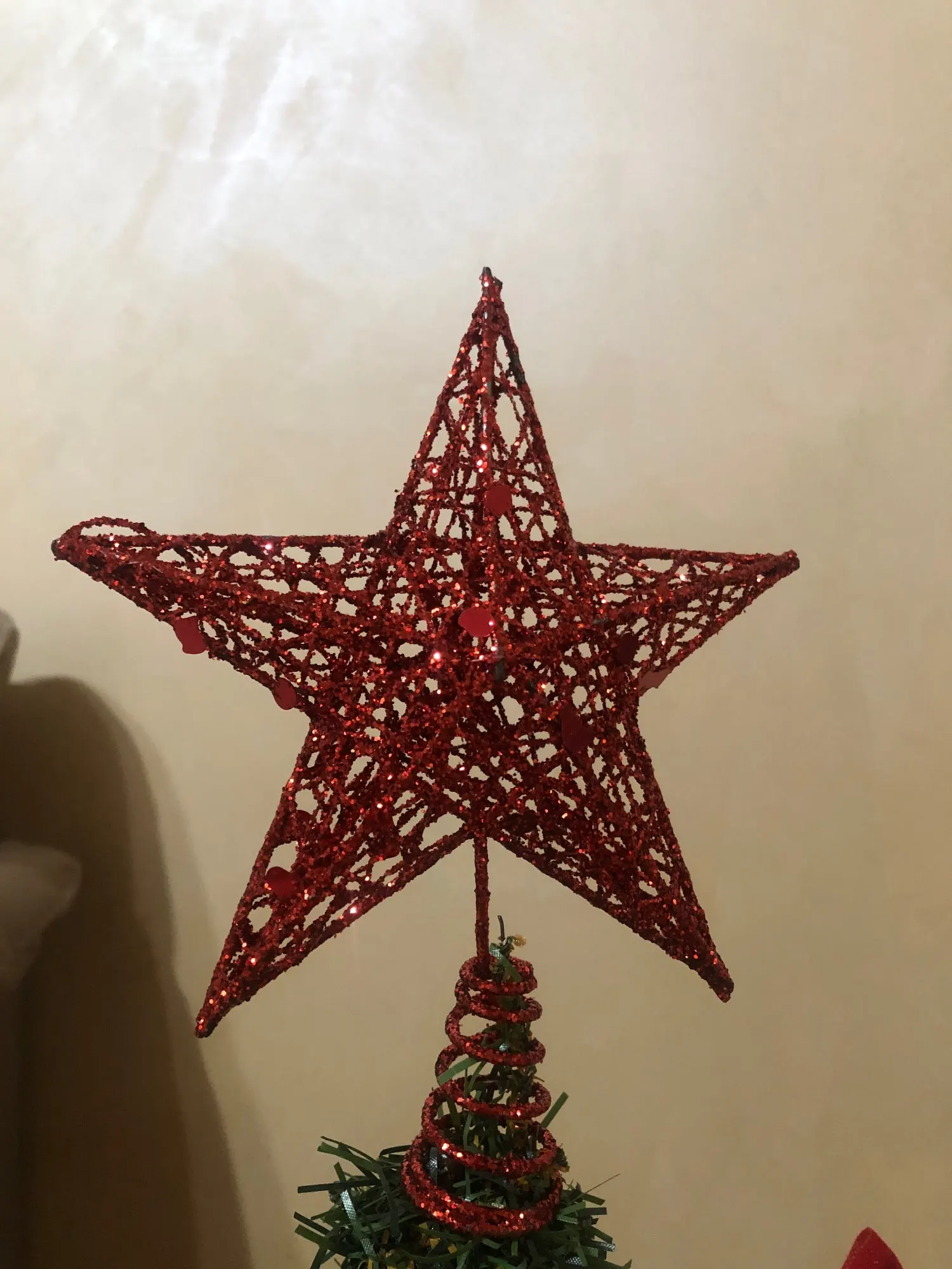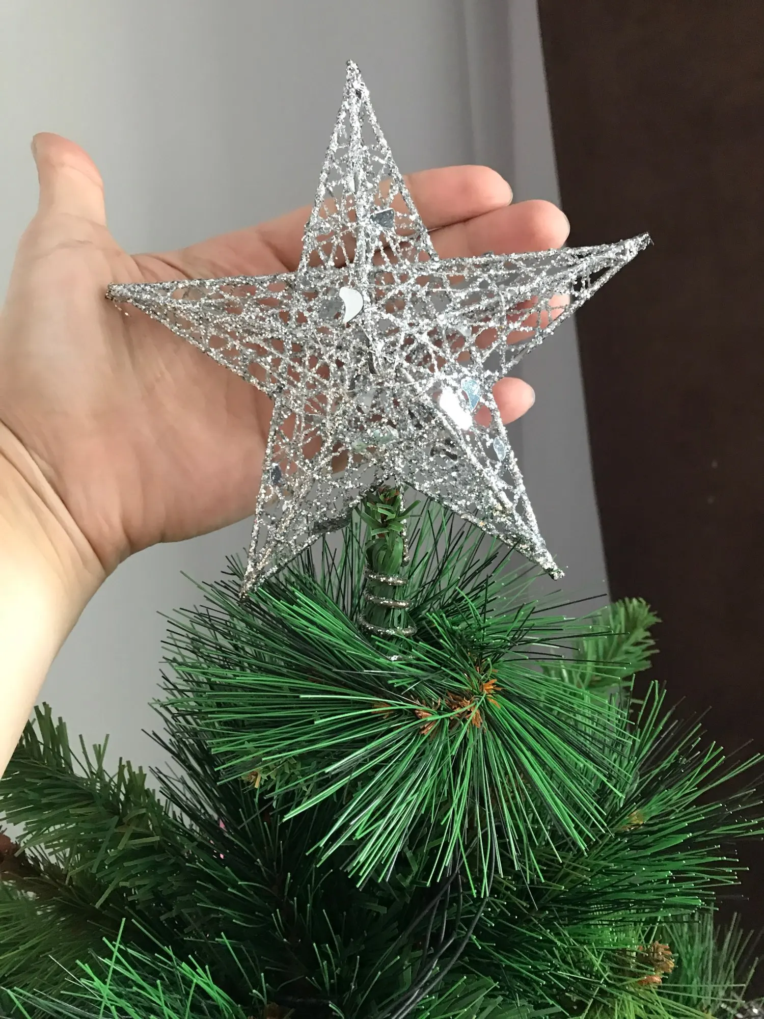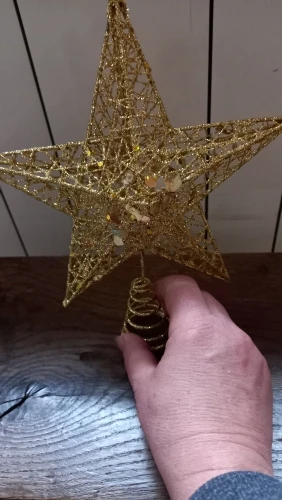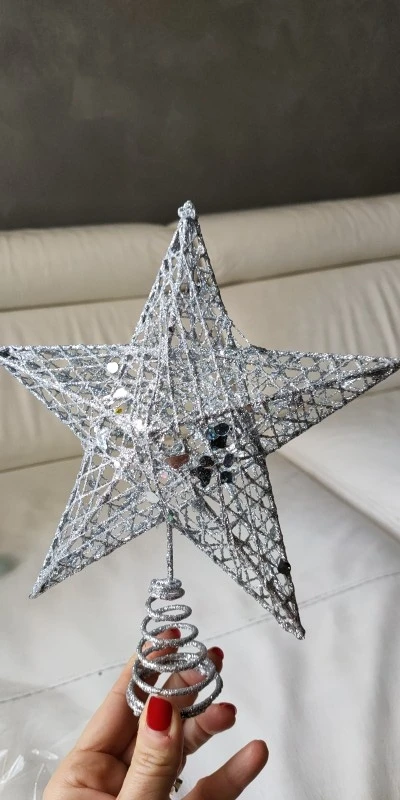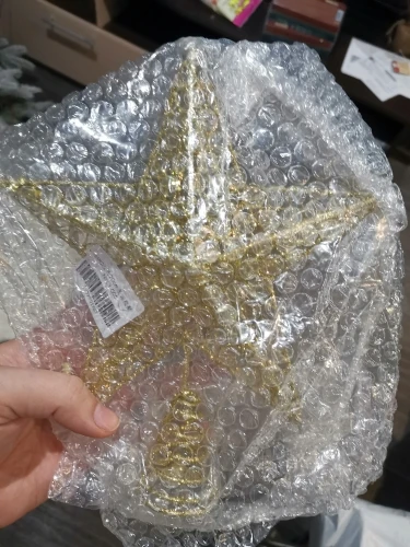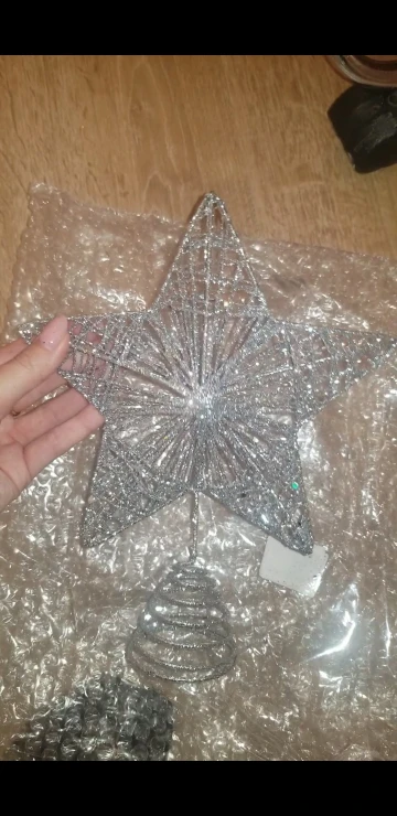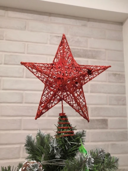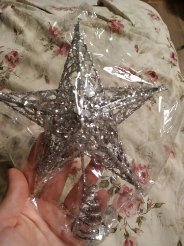 Хорошее украшение. Качественное и крепкое. Даже тяжеловата, макушка моей ёлки не выдерживает. Пришлось установить рядом. Правда Доставка 2 месяца. Заказала 11.11.20, а пришла 11.01.21 - уже после нового года. Пропустила сам праздник. Теперь уже на след. год.