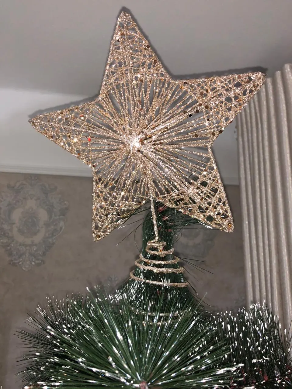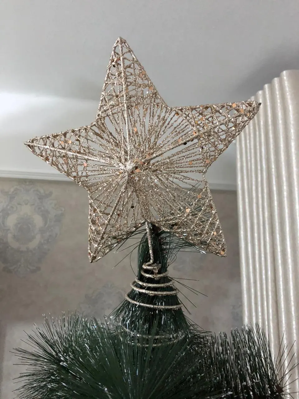 Красивая верхушка для елки, но очень осыпаются блестки. Держится хорошо, не падает. Доставка в Москву заняла чуть больше месяца. Не помялась и не погнулась в дороге.