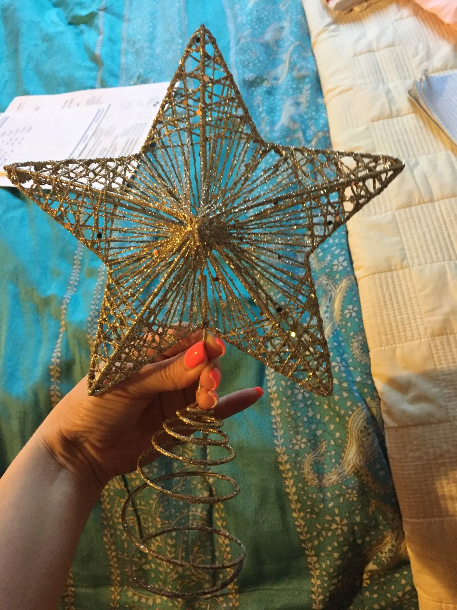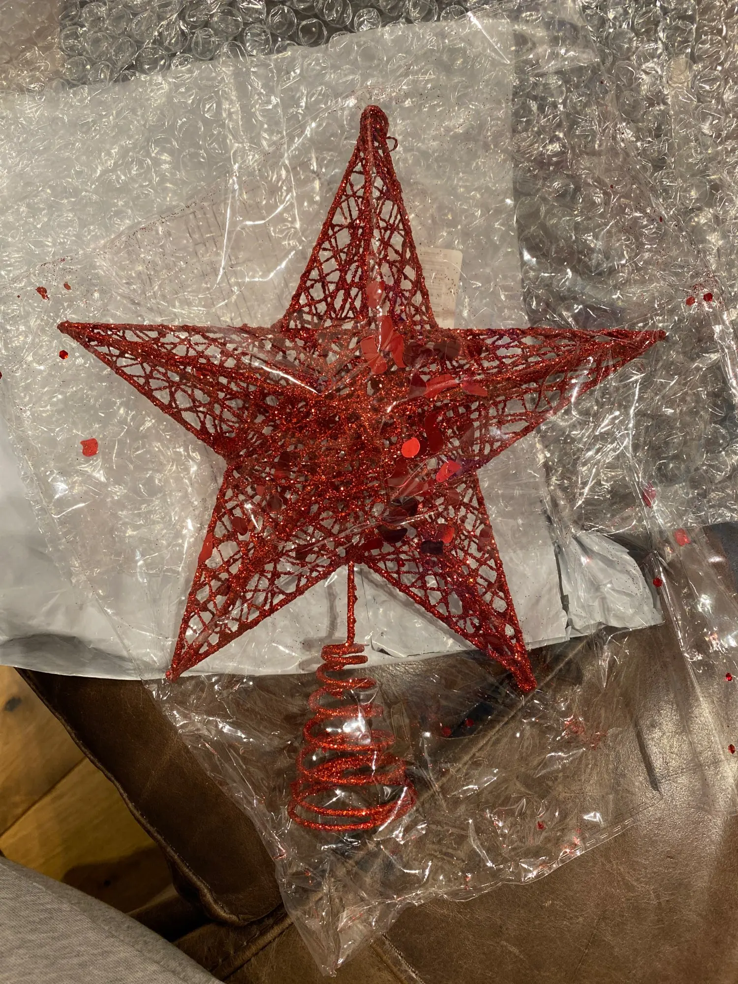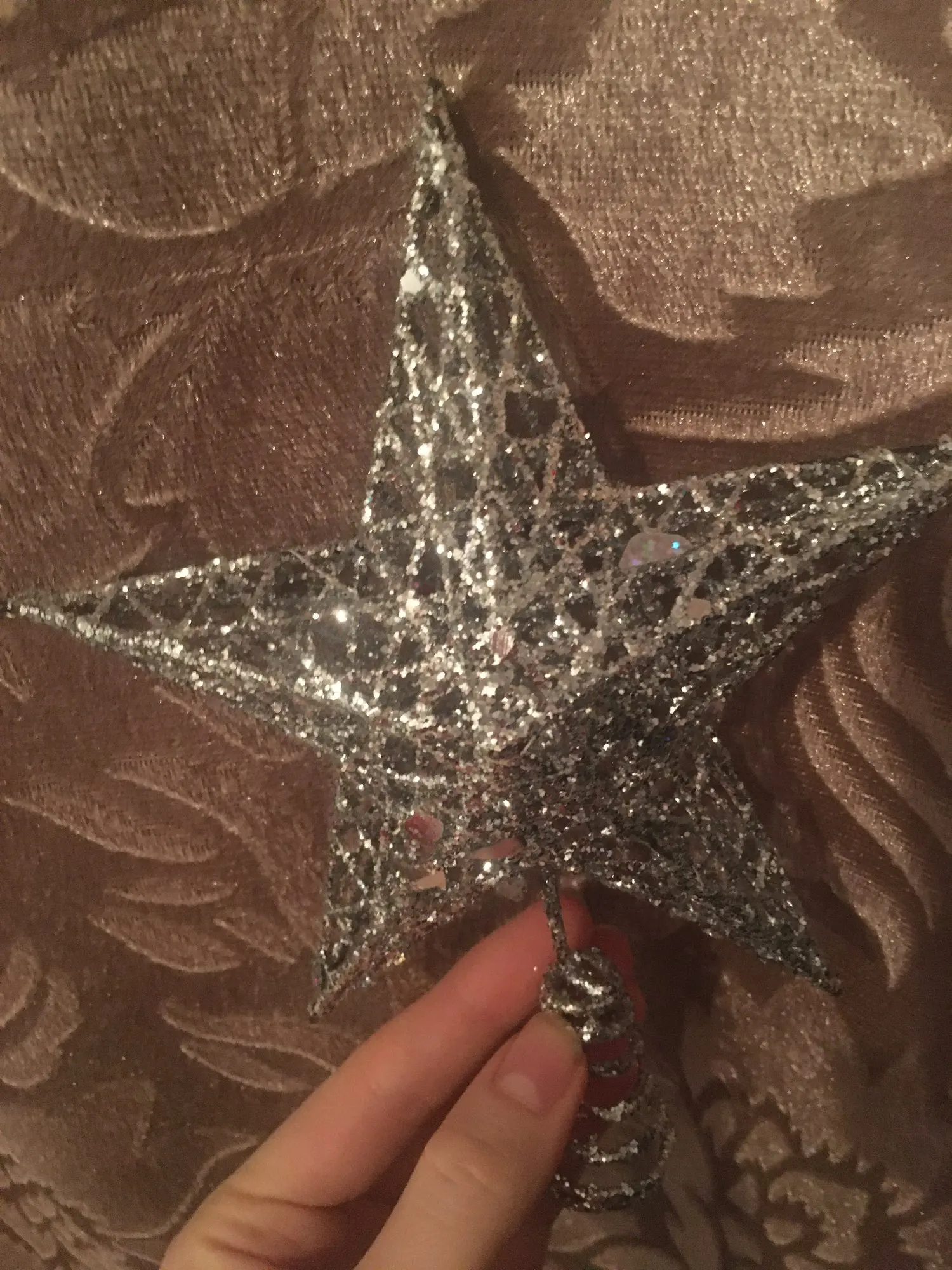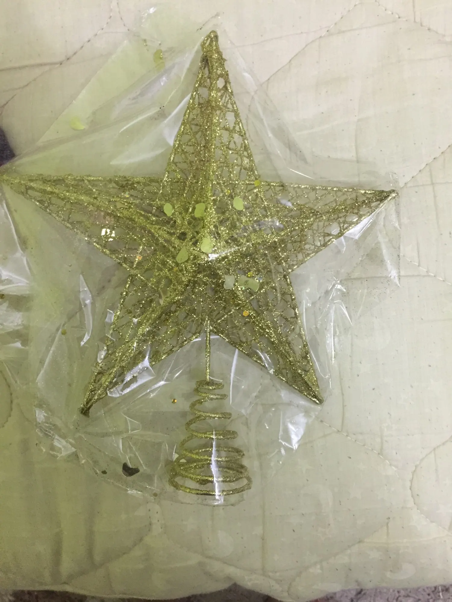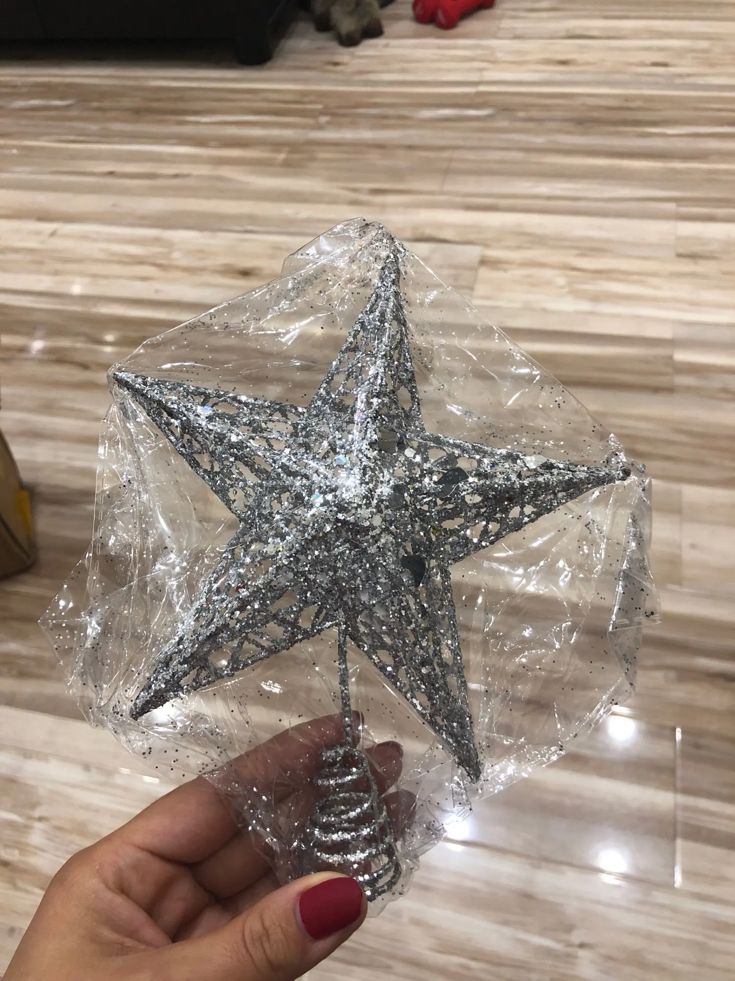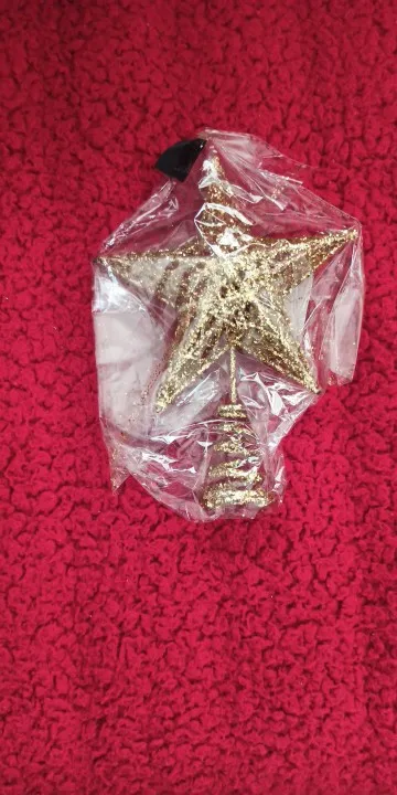 Мегабыстрая доставка! За 14 дней! Звезда интересная, переливается. Посмотрим как будет на елке держаться. Только блёстки остаются на руках.
