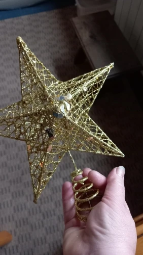 звезда красивая, крупная. шла месяц до Башкирии. только вот закрепить на макушке искусственной сосны нам ее не удалось. жаль...