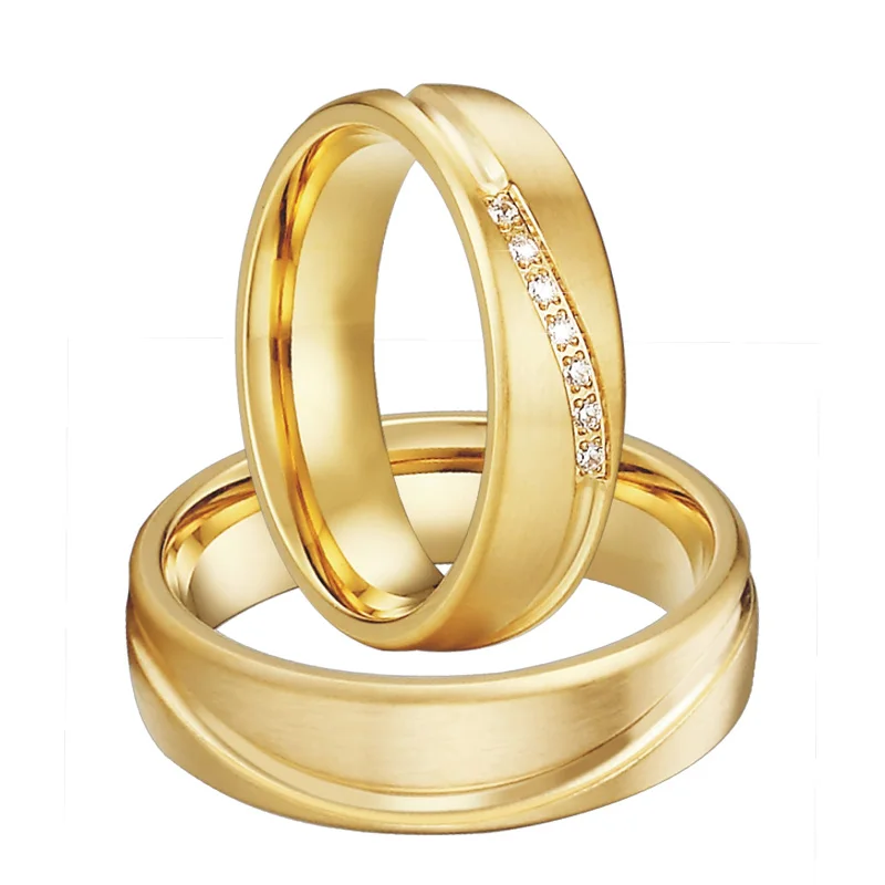 Парные обручальные кольца для мужчин и женщин, ювелирные изделия из нержавеющей стали с ионным покрытием из настоящего 18-каратного золота, 2 шт.