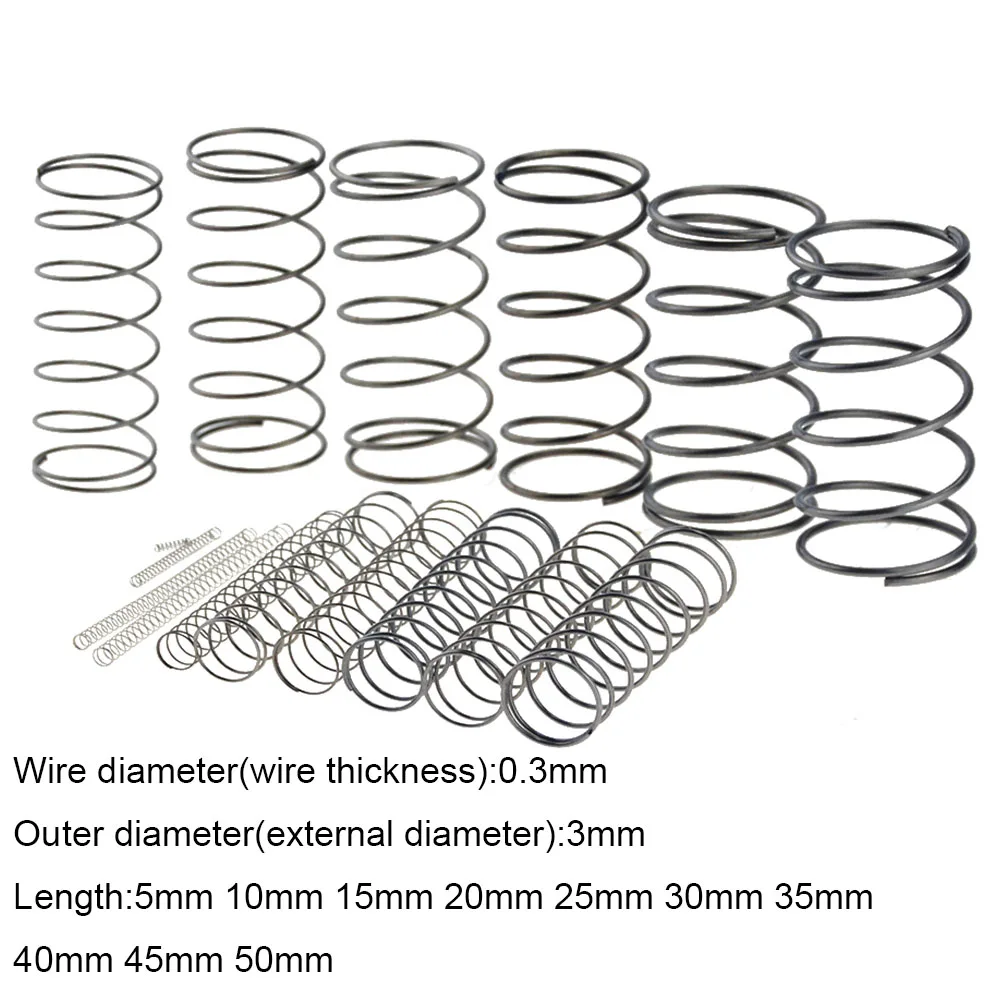 10 шт. 0,3*3*5-50 мм пружинная сталь маленький сжатие Механическая возвратная пружина давление пружина OD 3 мм x 3x5-50 мм