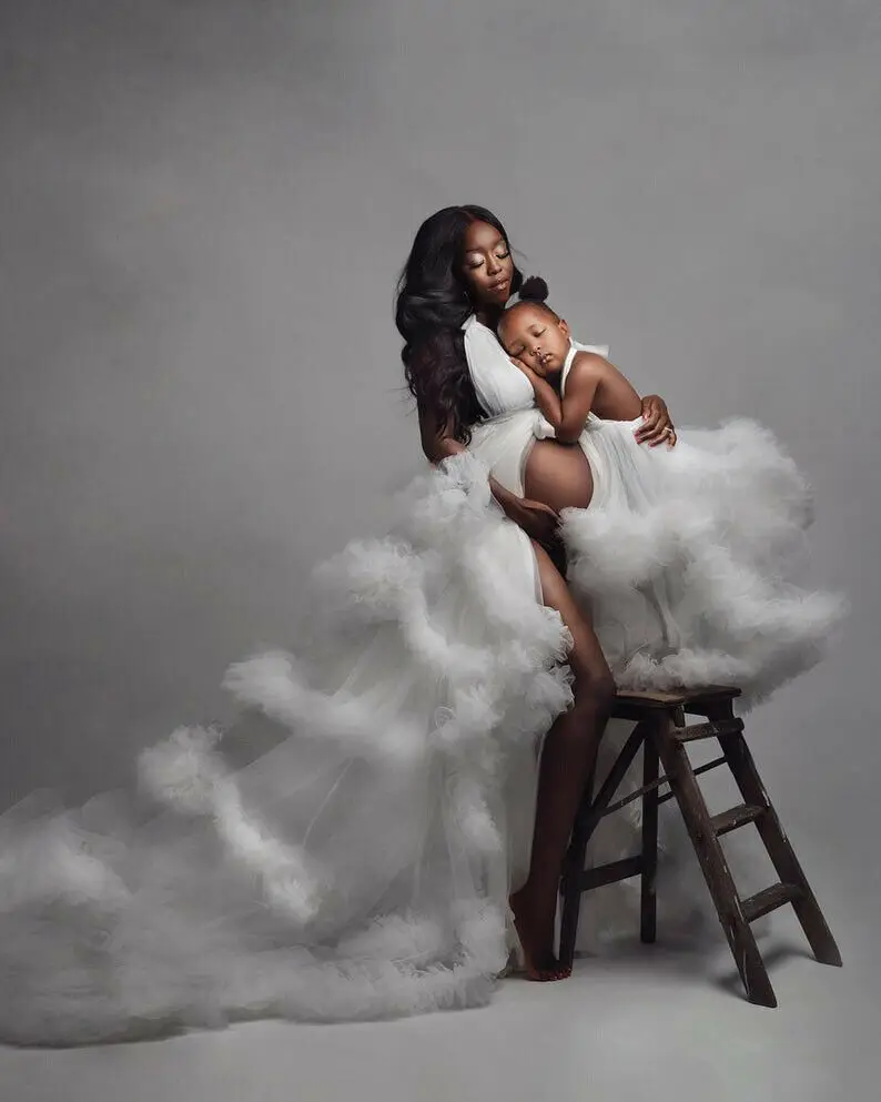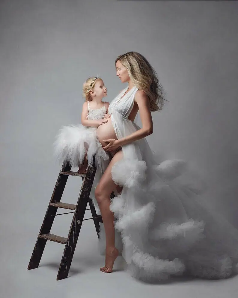Белое Женское Тюлевое платье для беременных, вечерние платья с V-образным вырезом и шлейфом для фотосессии