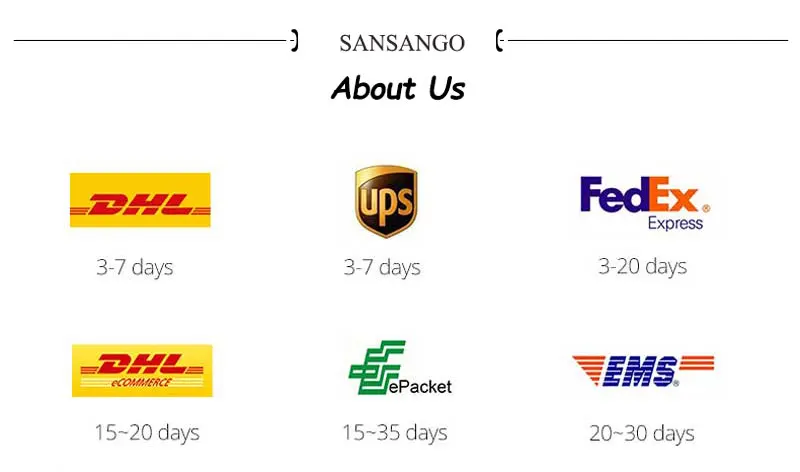 Мы поддерживаем множество способов доставки, включая авиапочту и экспресс-доставку. Обычно доставка Почта Китая обычной маленькой упаковке, занимает 35-60 дней. Быстрая доставка, такая как DHL,UPS,FEDEX, обычно занимает 7-15 дней.