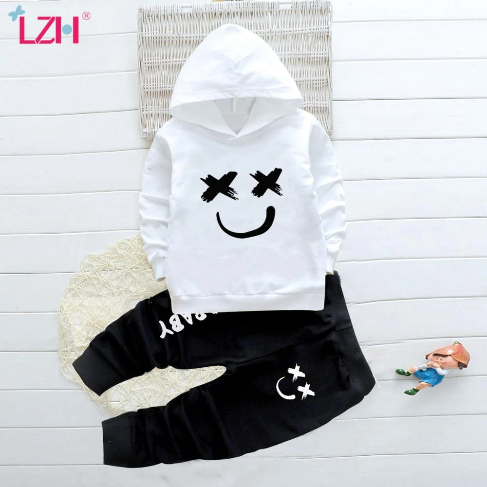 Новинка 2021, осенний свитер с капюшоном и длинными рукавами LZH + штаны с надписью, комплект из 2 предметов, милая детская одежда, детский спортивный костюм для девочек, комплект для маленьких мальчиков