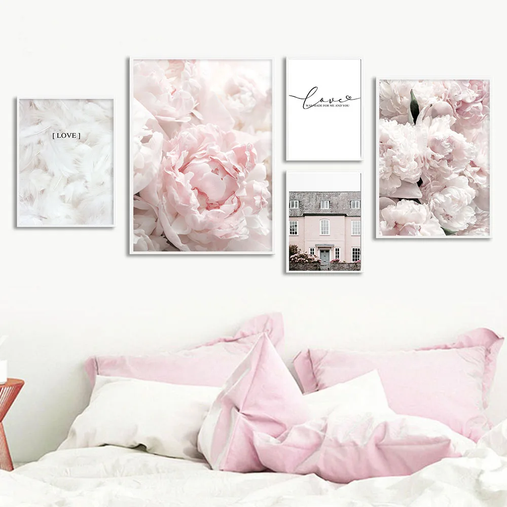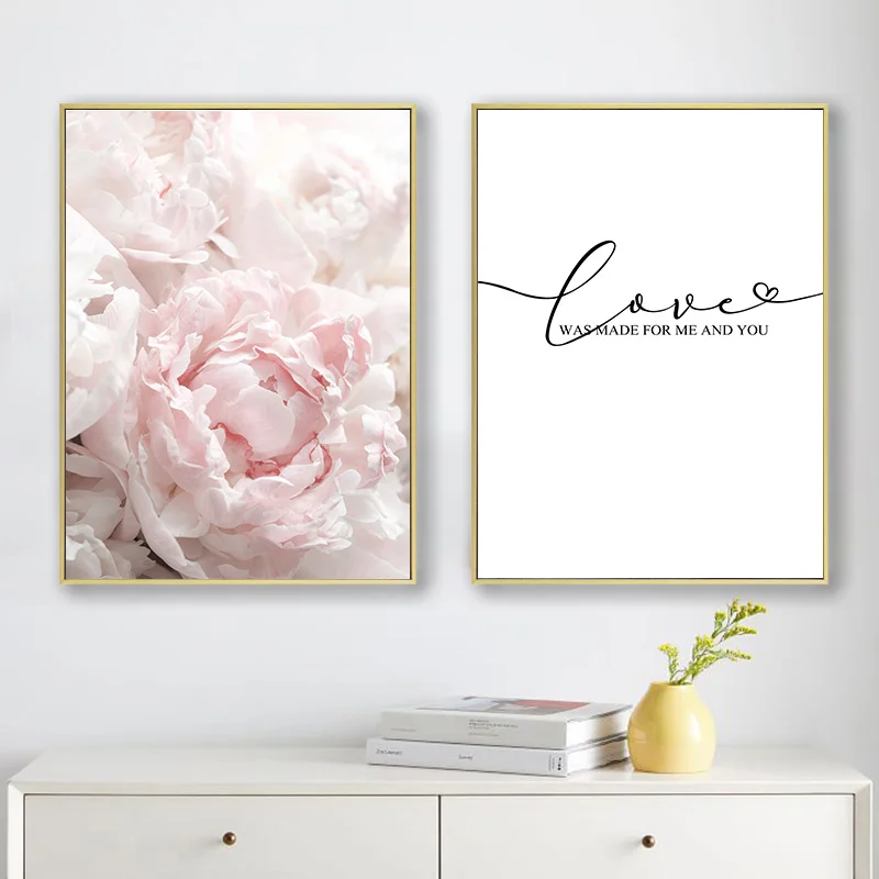 Постер в скандинавском стиле с розовыми цветами, пионами, перьями, цитатами о любви, настенные художественные картины, Картина на холсте для гостиной, Современный домашний декор