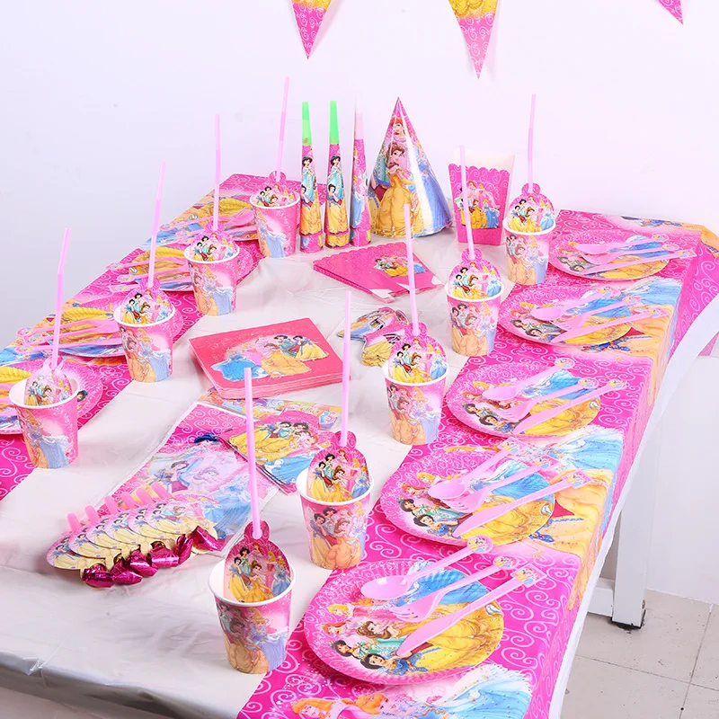 Одноразовая посуда на тему Принцессы Диснея для девочек, украшение для дня рождения, баннер для бумажные тарелки и стаканы, набор сувениров для малышей
