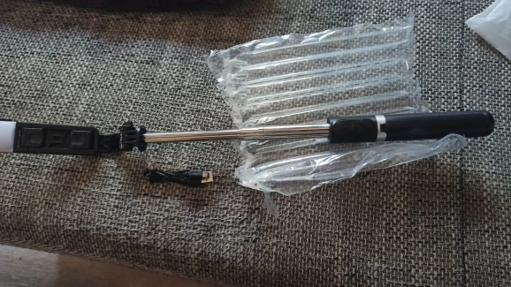 Товар прийшов відносно швидко - 19 днів. Непогана selfie палка за свої гроші. Якщо розкладати на всю довжину, то вона трохи гнется. Фіксатор тримає дуже добре. Приємно, що в комплекті одразу додають батарейку до пульта. Сам пульт підключається завдяки bluetooth, радіус мінімум метрів 3-5, але напряму без перешкод. Якщо закрити рукою - вже не працює.