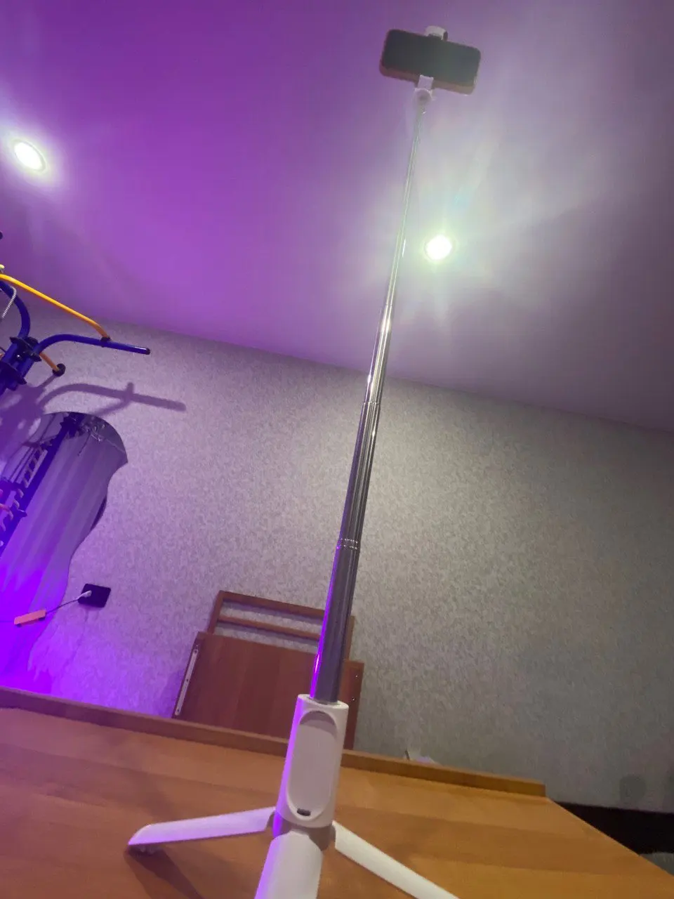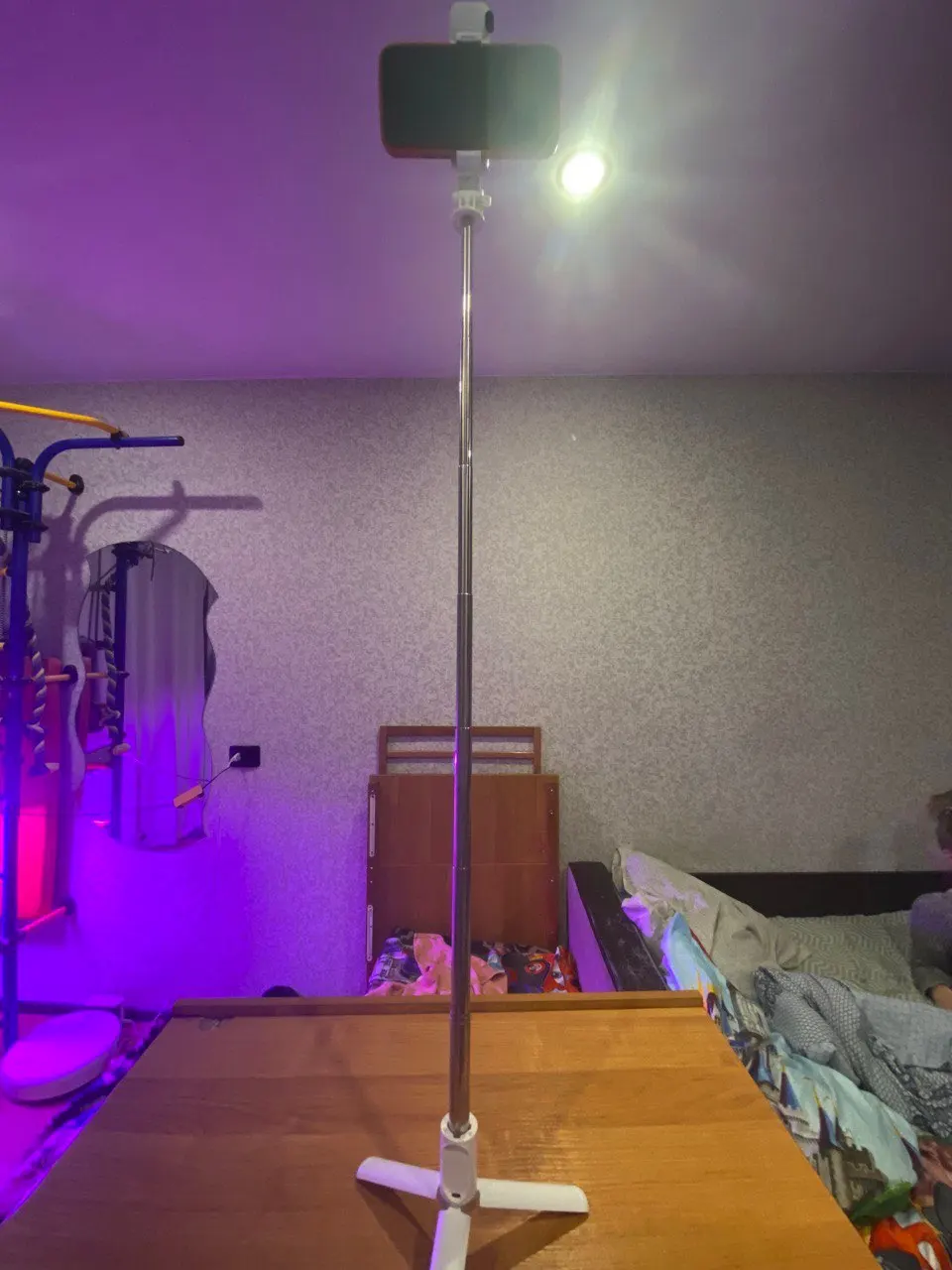 За свои деньги трипод просто отличный. Телефон держит крепко. Телескопическая трубка позволяет вести съёмки с довольно большого угла. Встроенная подсветка имеет много режимов от тёплого до холодного, и, конечно не айс. Подойдёт только для съёмки с близкого расстояния, и направлена она в сторону снимающего, вот если бы в другую сторону светил можно бы было использовать для подсветки во время стационарной макросъемки. Но в целом доволен заказом. Пульт работает, от батарейки. Подсветка на аккумуляторе с подзарядкой от microUSB. Всё классно. For the money, the tripod is just great. The phone is holding tight. The telescopic tube allows you to shoot from a fairly large angle. The built-in backlight has many modes from warm to cold, and of course not ice. Suitable only for close-up photography, and it is directed towards the shooter, so if the other side of the lights could be used for illumination during stationary macro photography. But on the whole I am satisfied with the order.