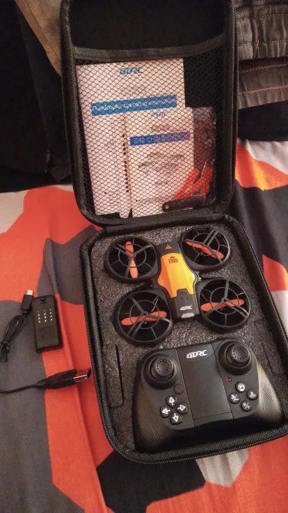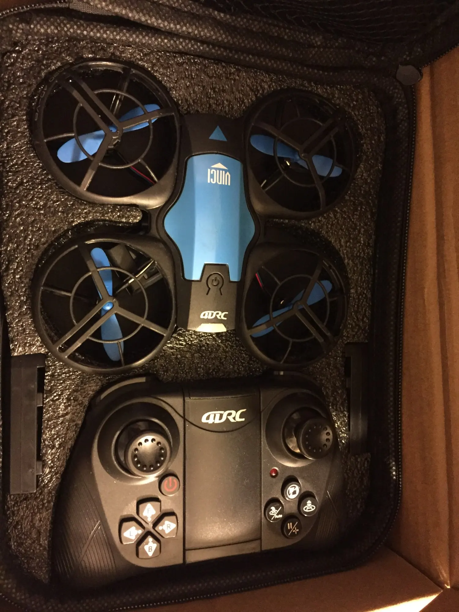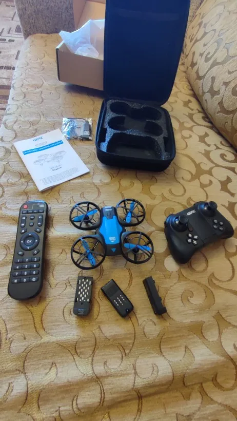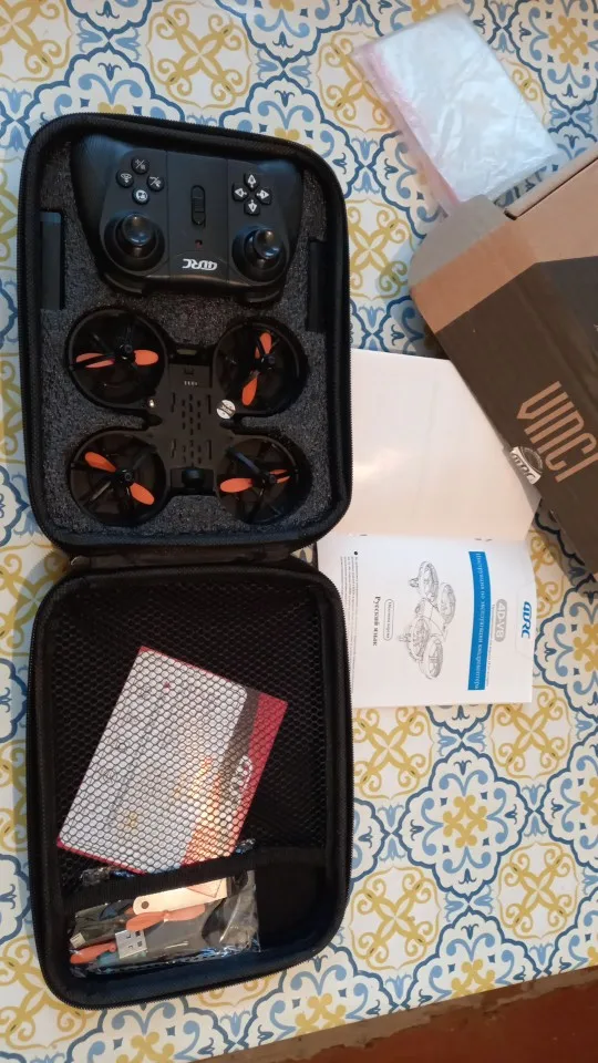 Дрон огонь, пришло аккуратно в чехле с двумя батареями и запасными лопастями,управляется шикарно не то что продают тут в китайских магазинах,брал брату на подарок но до вручения не удержался и протестировал,мне очень понравился)