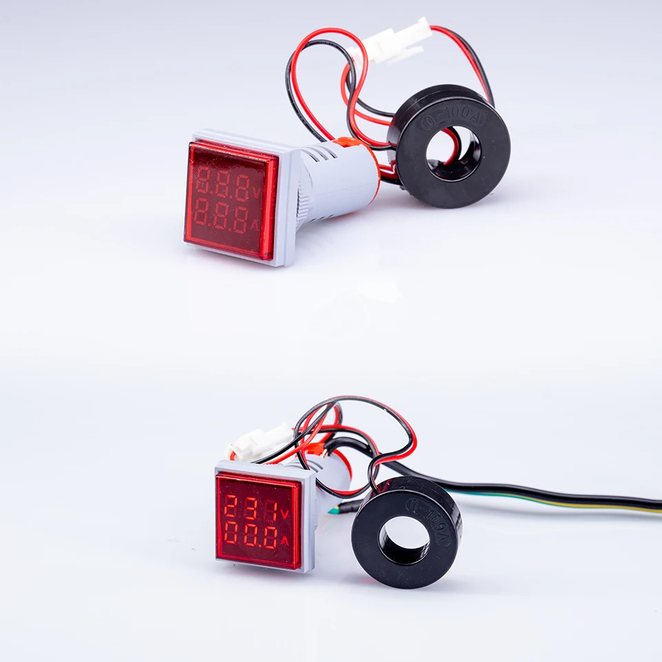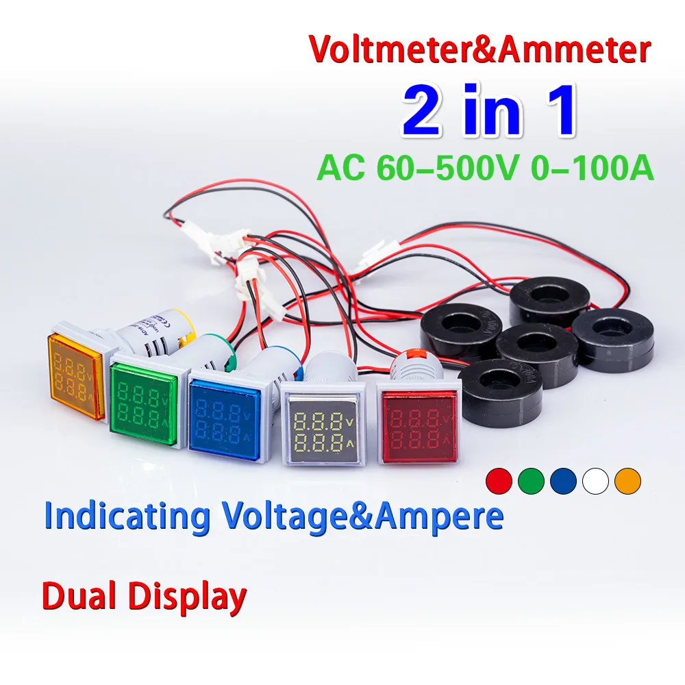 Новый квадратный 2 в 1 светодиодный цифровой двойной дисплей Вольтметр Амперметр измеритель напряжения тока измерение AC 60-500 В 0-100A 22 мм