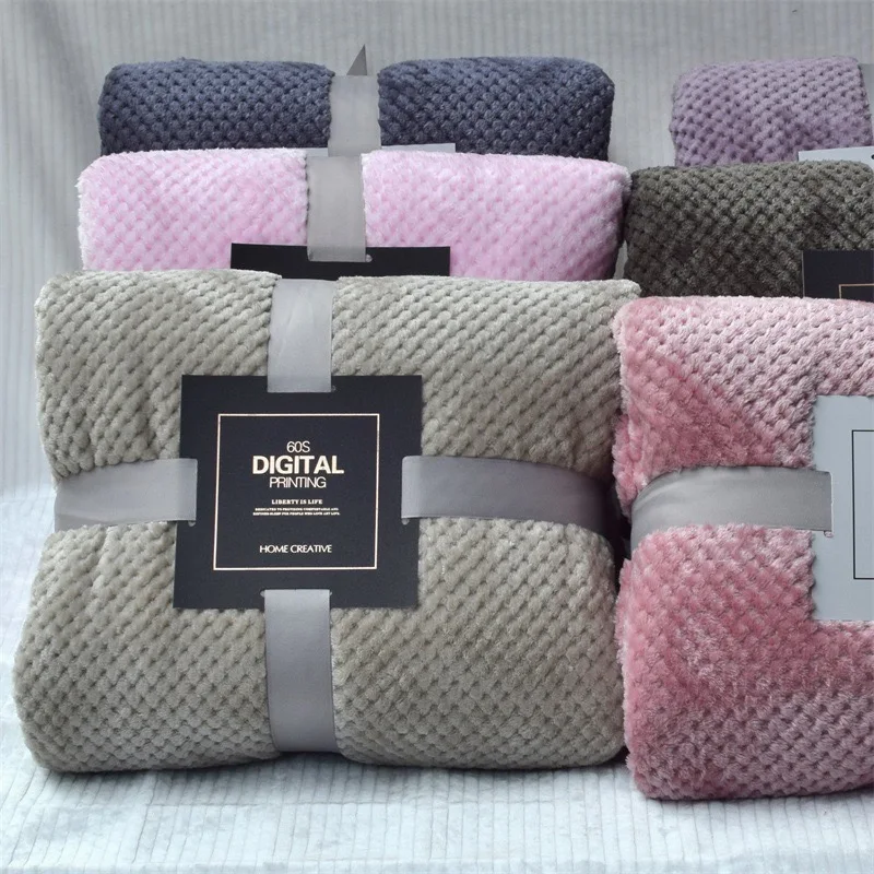 Утолщенное однотонное фланелевое одеяло с сеткой в виде ананаса, Ко...