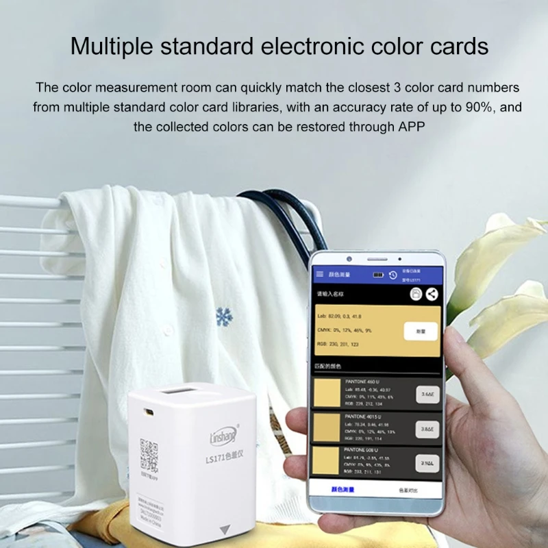 LS171 мобильный телефон приложение портативный цветной imeter анализатор цвета с экраном Цифровой точный Лабораторный Измеритель цвета 8 мм Особенности: 【 Цветовая разница контраст · QC обнаруживает】: определите разницу в цвете между цветом образца и стандартным цветом, после установки разницы в цвете threshold e порог (0,1-50 опционально), Приложение может автоматически определить, является ли разница в цвете квалифицированной или нет, 【 стандартная Цветовая Добавка: со стандартной функцией добавления цвета, цвета могут быть извлечены из библиотеки цветных карт, что удобно для разницы в цвете по сравнению с цветом образца, без необходимости носить с собой тяжелые цветные карты 【 6 цветовых отличий формулы: Встроенный 6 формул разницы в цвете, чтобы обеспечить стандарты для определения разницы в цвете для различных отраслей промышленности 【несколько стандартных электронных цветных карт 】: комната для измерения цвета может быстро соответствовать самым близким 3 цветным номерам карт из нескольких стандартных цветовых библиотеки с точностью до 90%, И собранные цвета могут быть восстановлены через приложение 【храните большое количество цветовых данных 】: большое количество цветовых данных можно хранить в мобильном приложении, собирайте желаемый цвет в любое время, В любом месте и создать персональную цветную карту библиотеки характеристики: Модель: LS171 (с экраном) режим отображения данных: Мобильное приложение + Дисплей: 0,96 дюймовый светильник метод ing: D/8, в том числе отражающий светильник (SCI) Размер: 57x57x89.4мм Вес: 126 г Размер измерения: 8 мм Условия измерения: светильник D65, поле обзора 10 ° Передача данных: Bluetooth Примечание: приложение поддерживает только устройства Android посылка включает в себя: (с розничной посылка d) 1 X LS171 Digital Колориметр