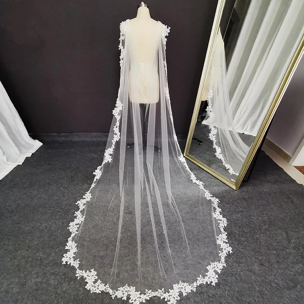 Настоящее фото кружевной свадебный болеро Романтический мягкий тюль белый цвет слоновой кости 2,5 метров Свадебные накидки с зажимом свадебные аксессуары