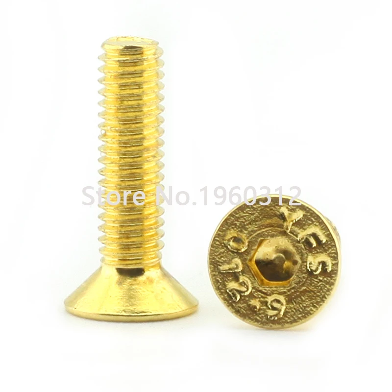 Винты DIN7991 M2 M2.5 M3 M4 M5 с потайной плоской головкой и шестигранным отверстием, легированная сталь, титановое покрытие, позолоченные, 5-10 шт.