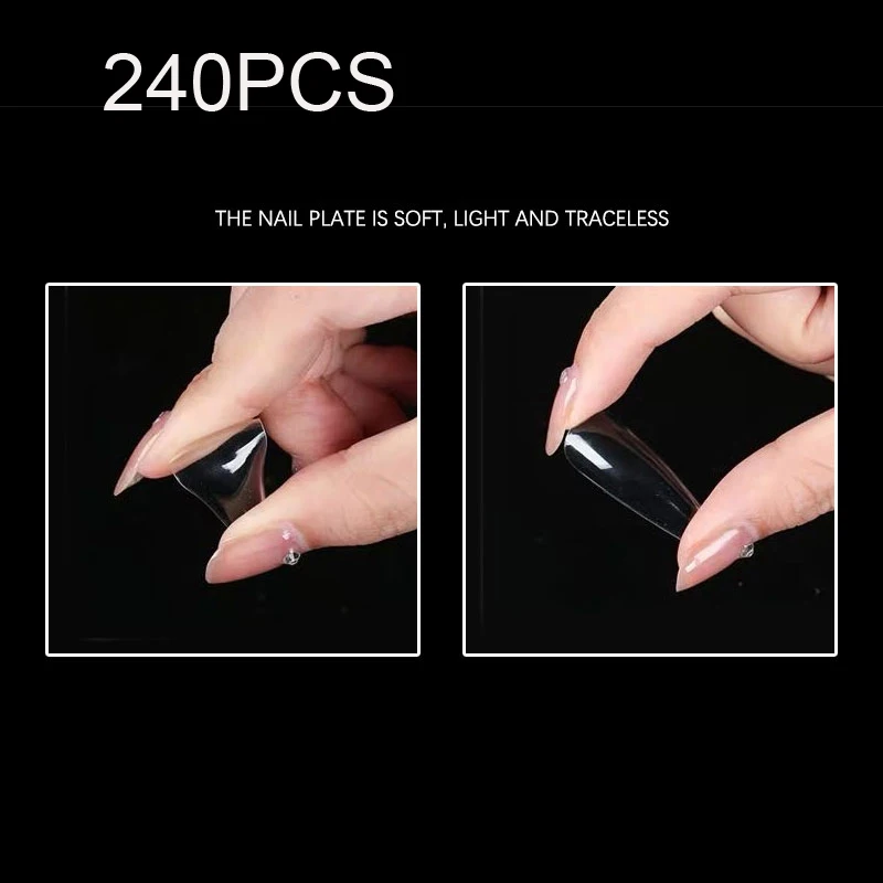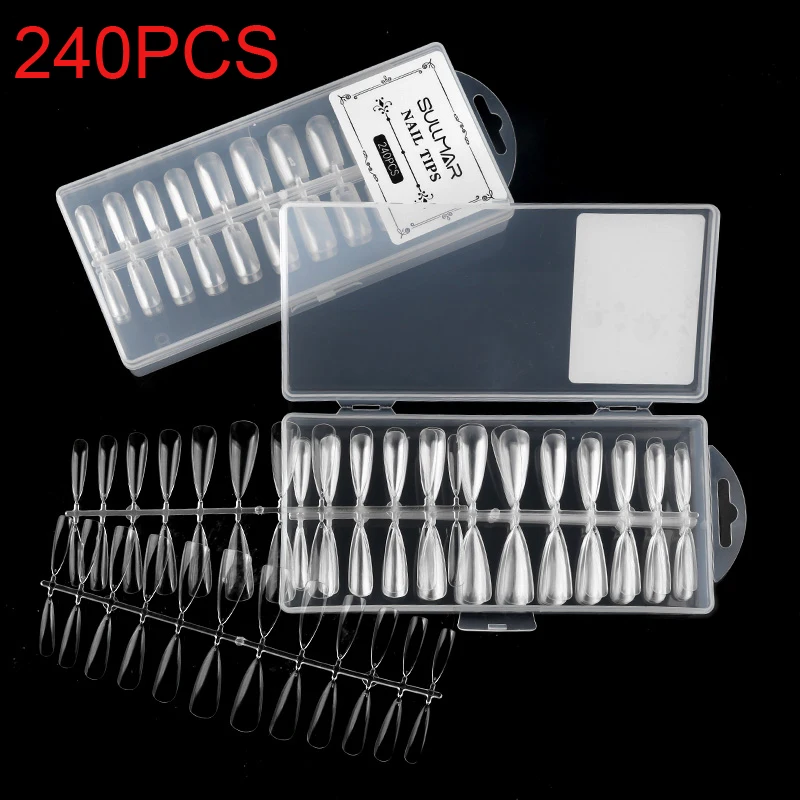 240 шт.кор. акриловые накладные ногти (стилетыгробыовальныеминдальныеквадратные) ABS полное покрытие ногтей типсы 12 разных размеров прозрачные флисовые ногти