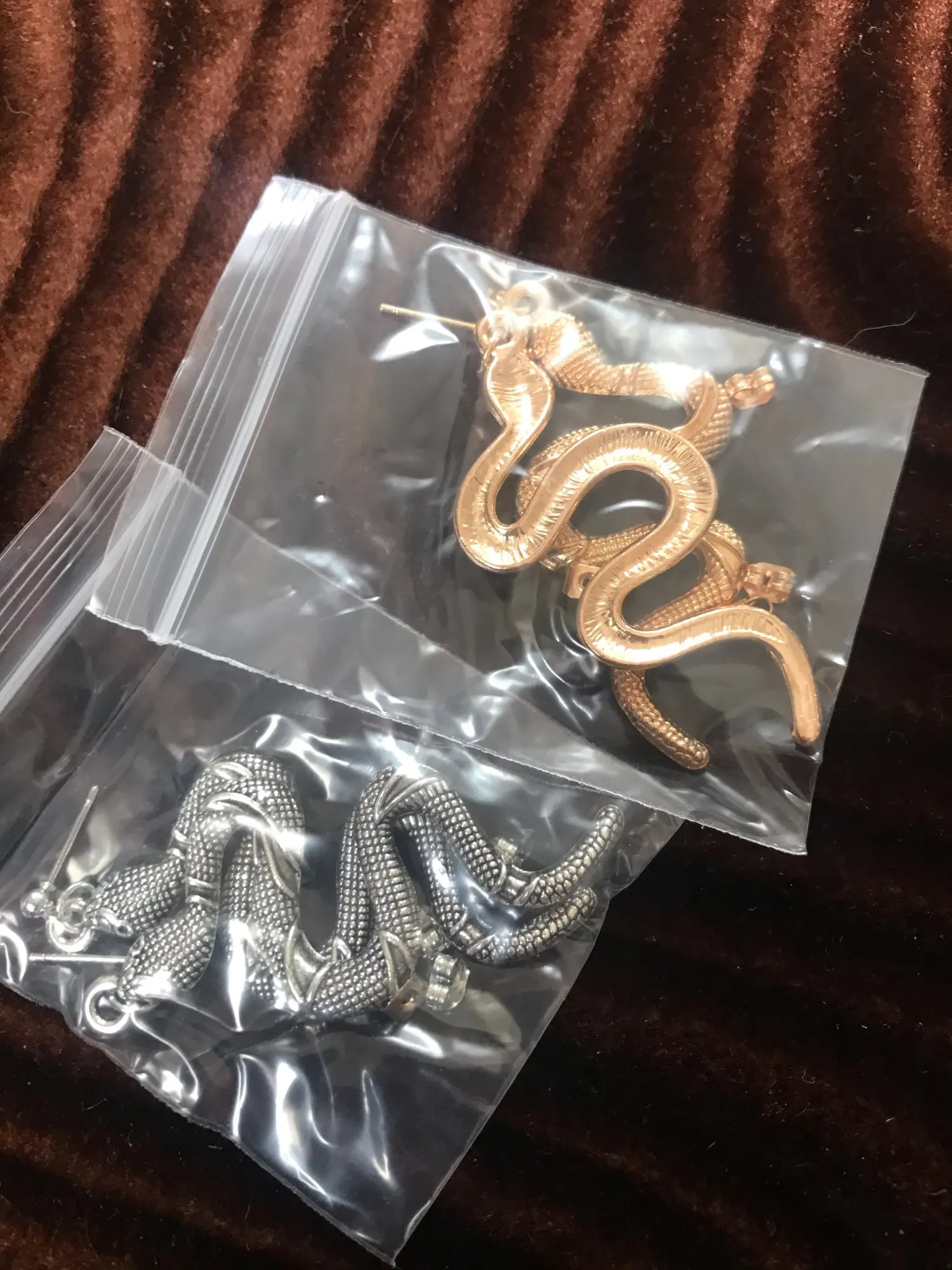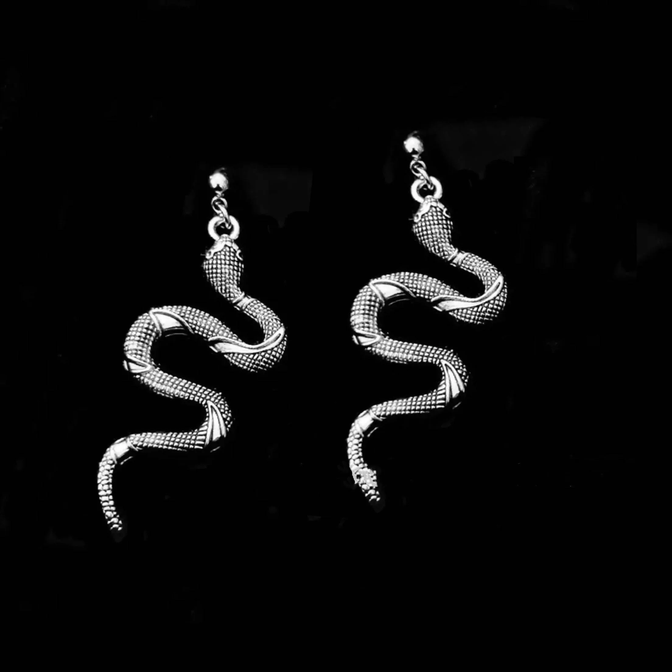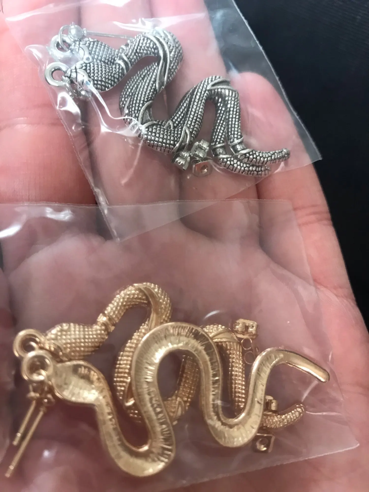 Женские длинные серьги-гвоздики в виде змеи, серебристого цвета
