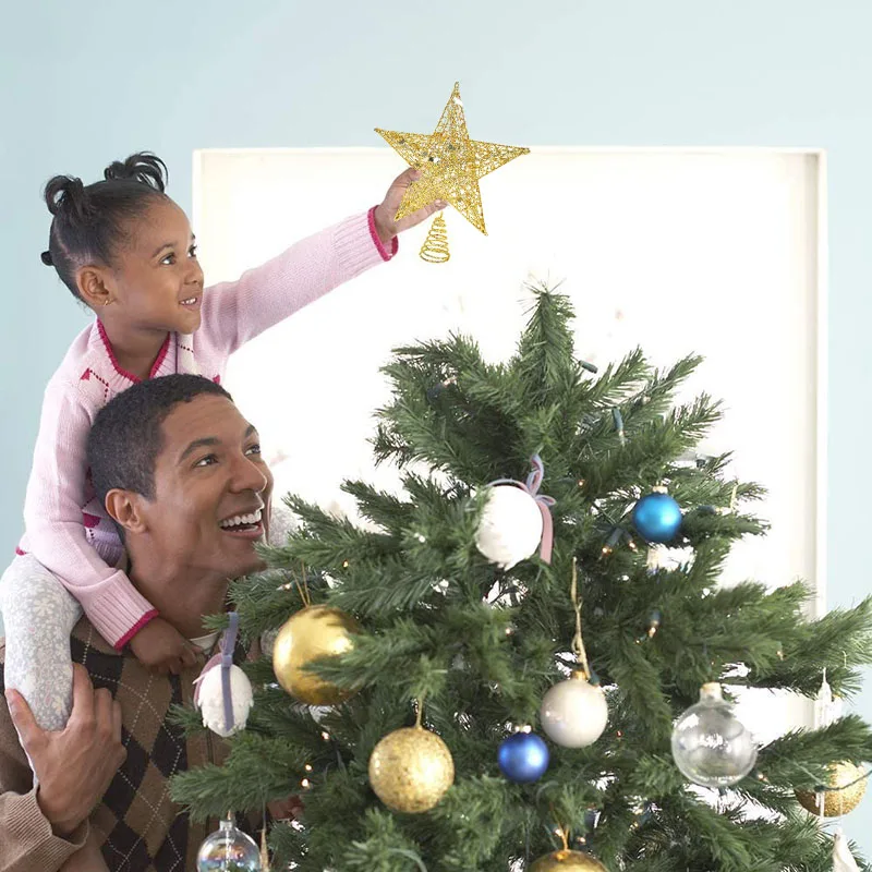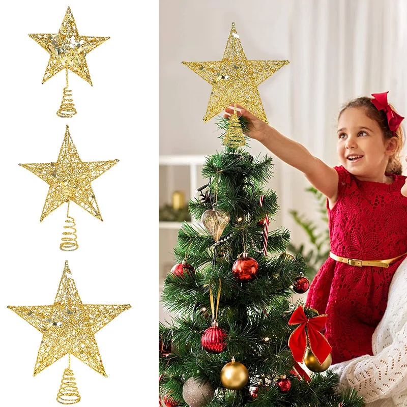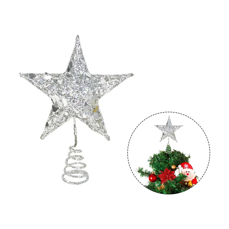 Золотистый Серебристый блестящий топ для рождественской елки звезда изысканное железное художественное украшение для рождественской елки Новогоднее украшение для дома