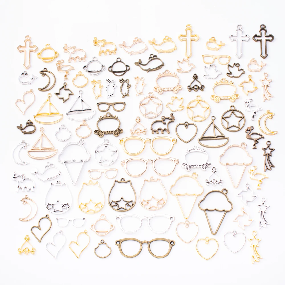 88 шт.лот, геометрические модные амулеты, УФ, эпоксидная смола, металлическая рамка, основа, кулон, пустые DIY Подвески для изготовления ювелирных изделий