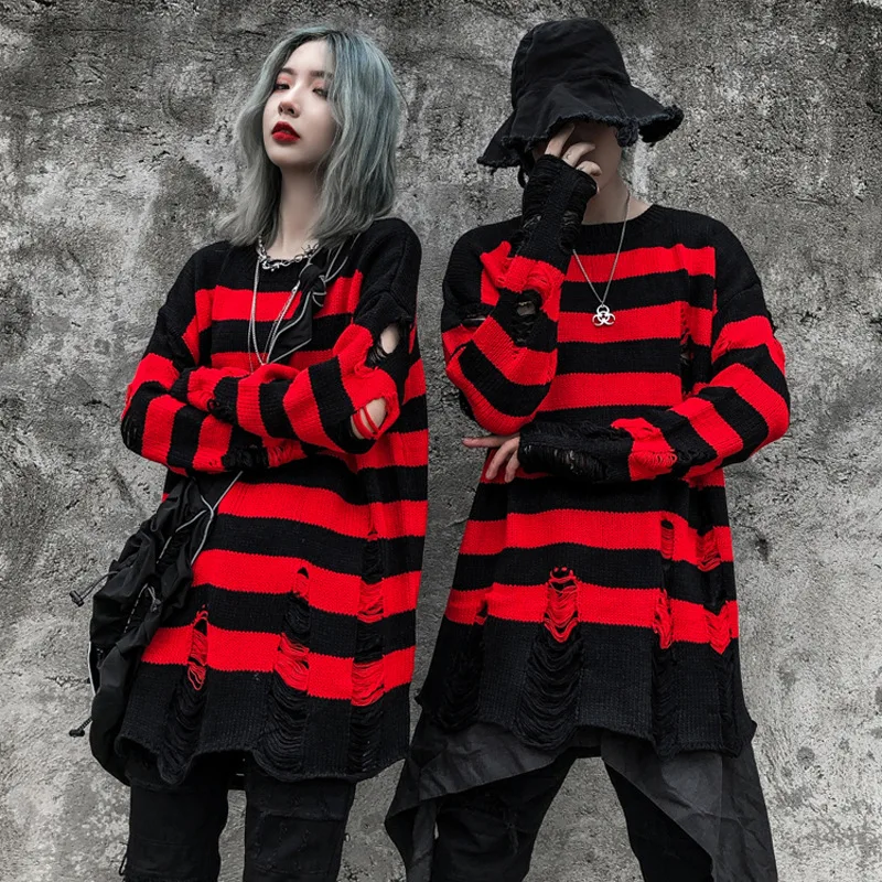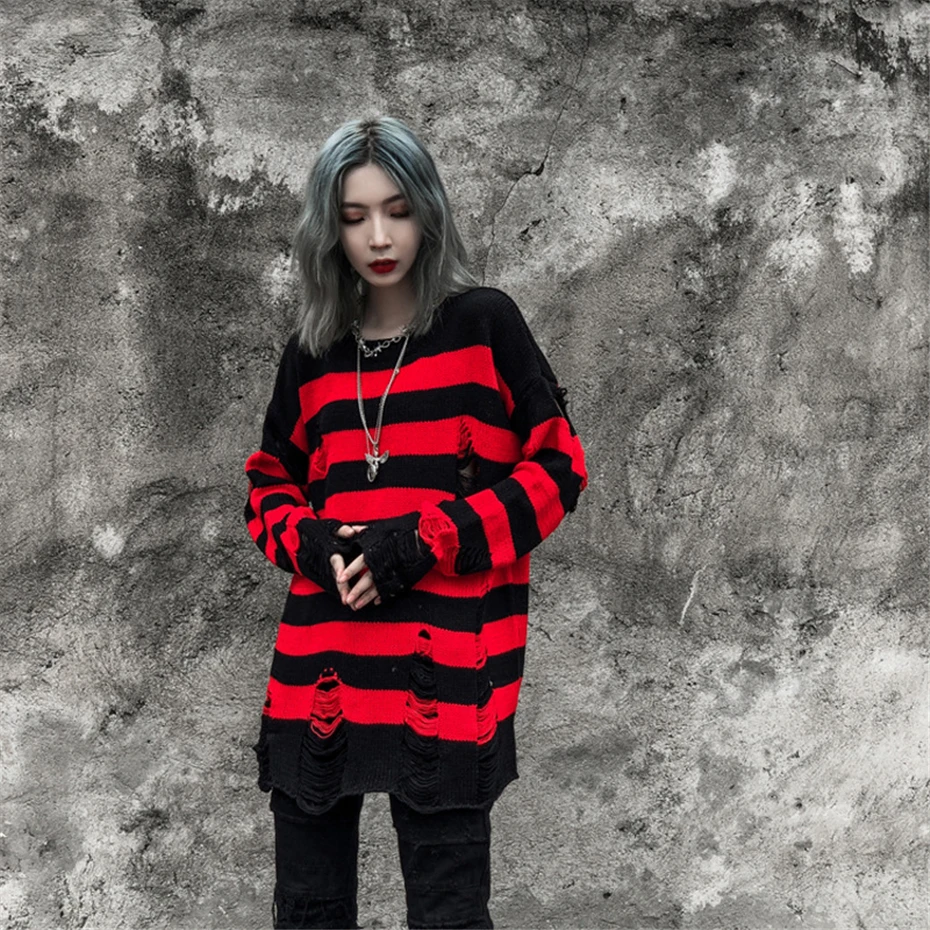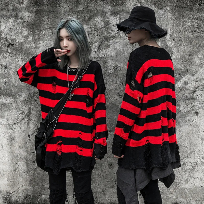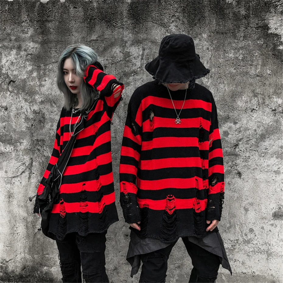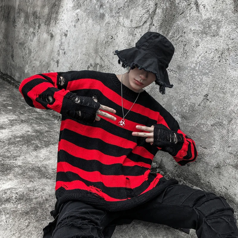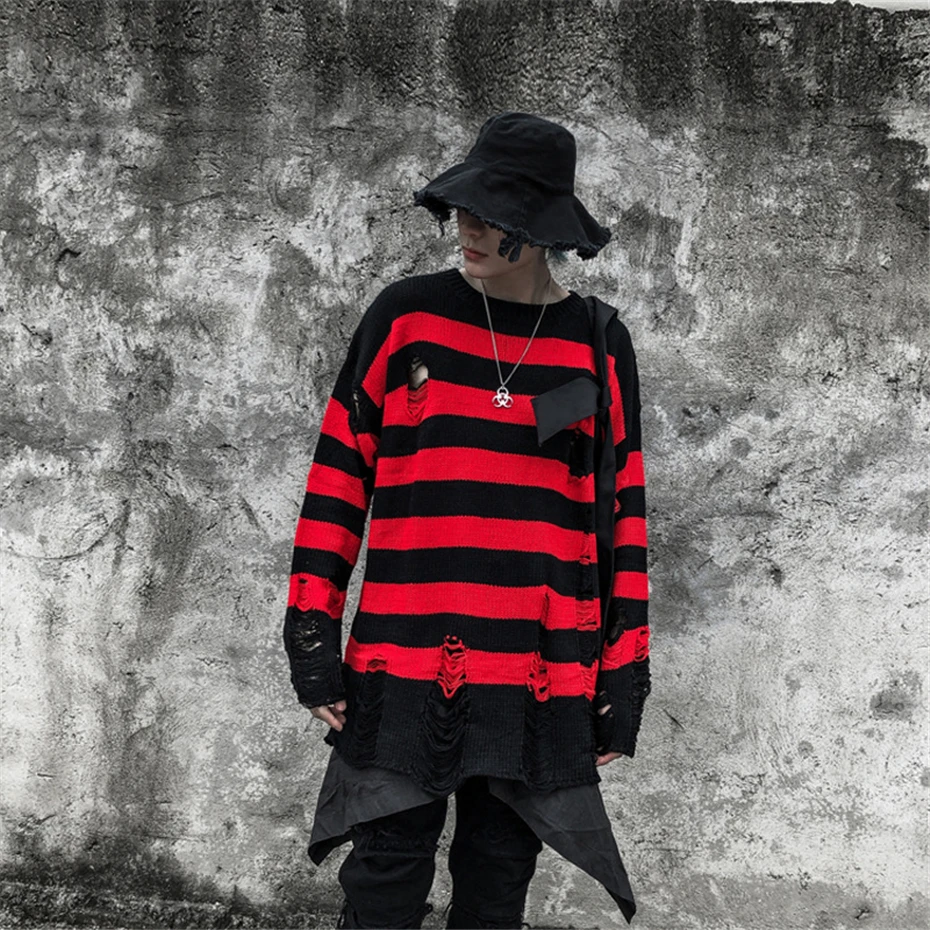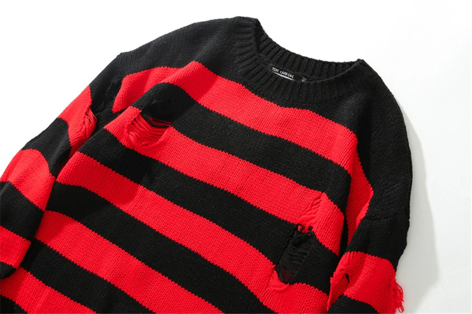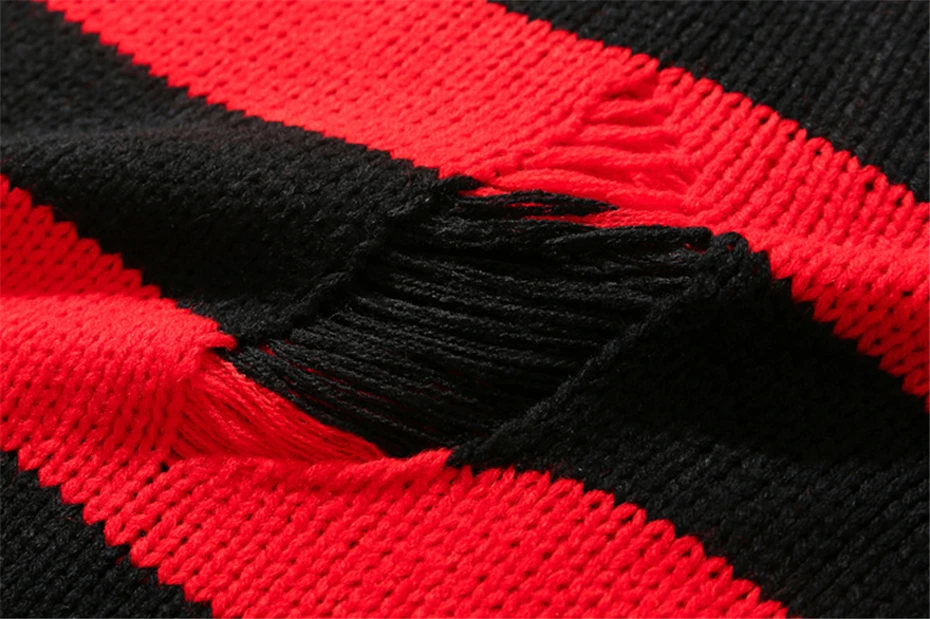 Полосатый свитер для мужчин и женщин, разорванный рваный вязаный пуловер с дырками, трикотажный Мужской пуловер в стиле хип-хоп, модная уличная одежда WQ192