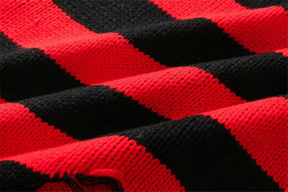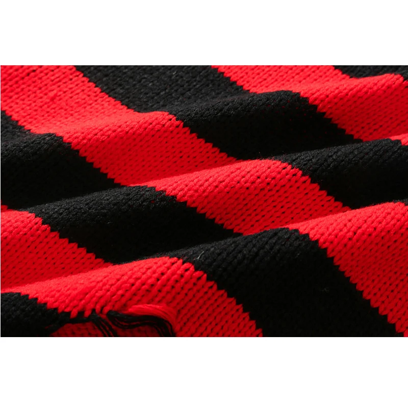 Свитер мужской шерстяной, в красно-черную полоску, с кисточками