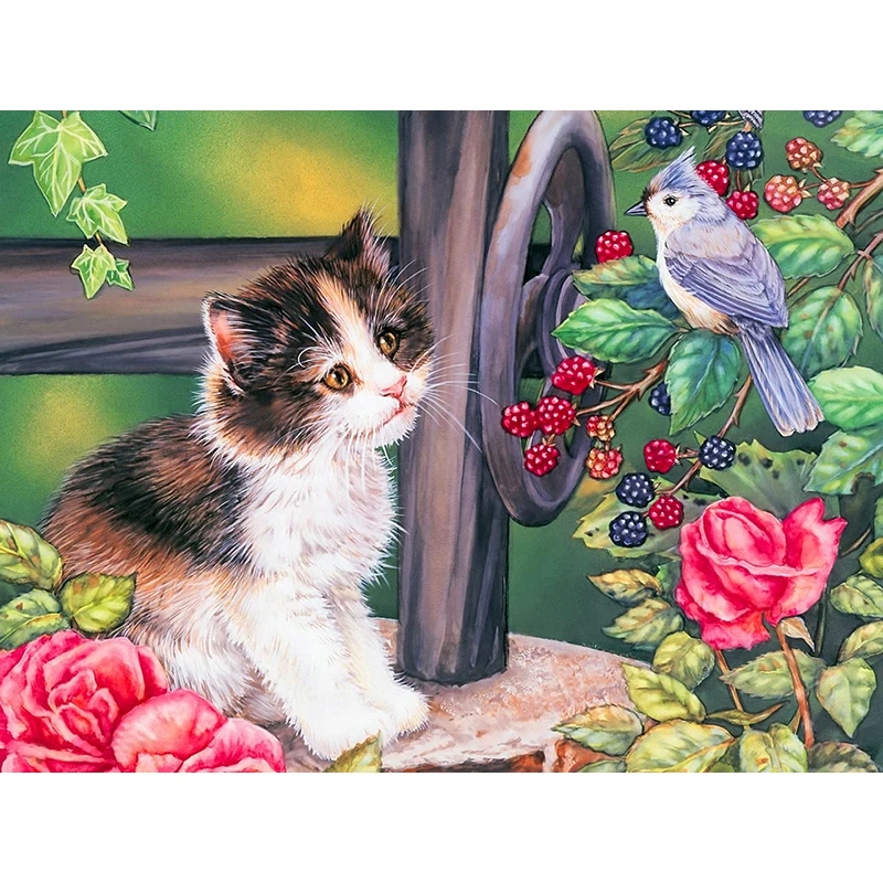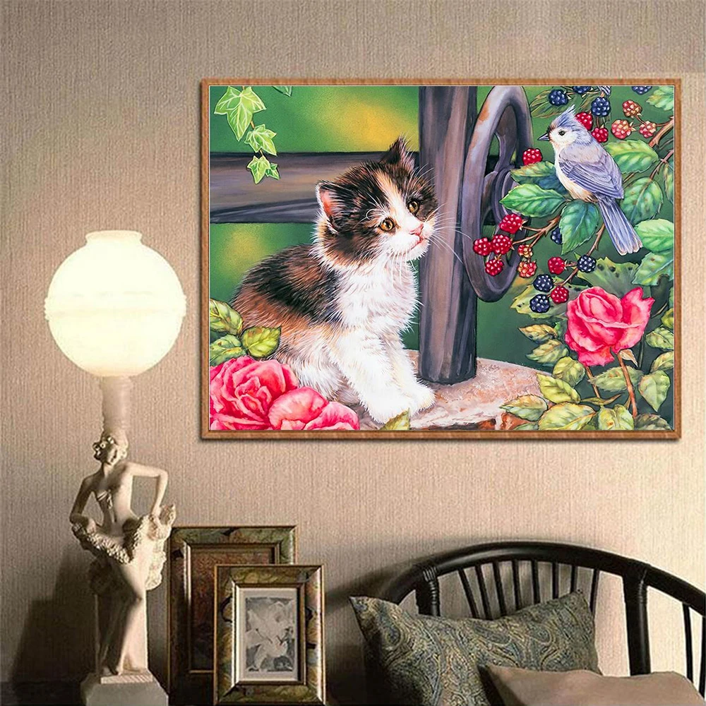 5d Diy Алмазная вышивка кошки с птицами Алмазная Картина Вышивка крестом полностью квадратные Стразы мозаика украшение для дома подарок