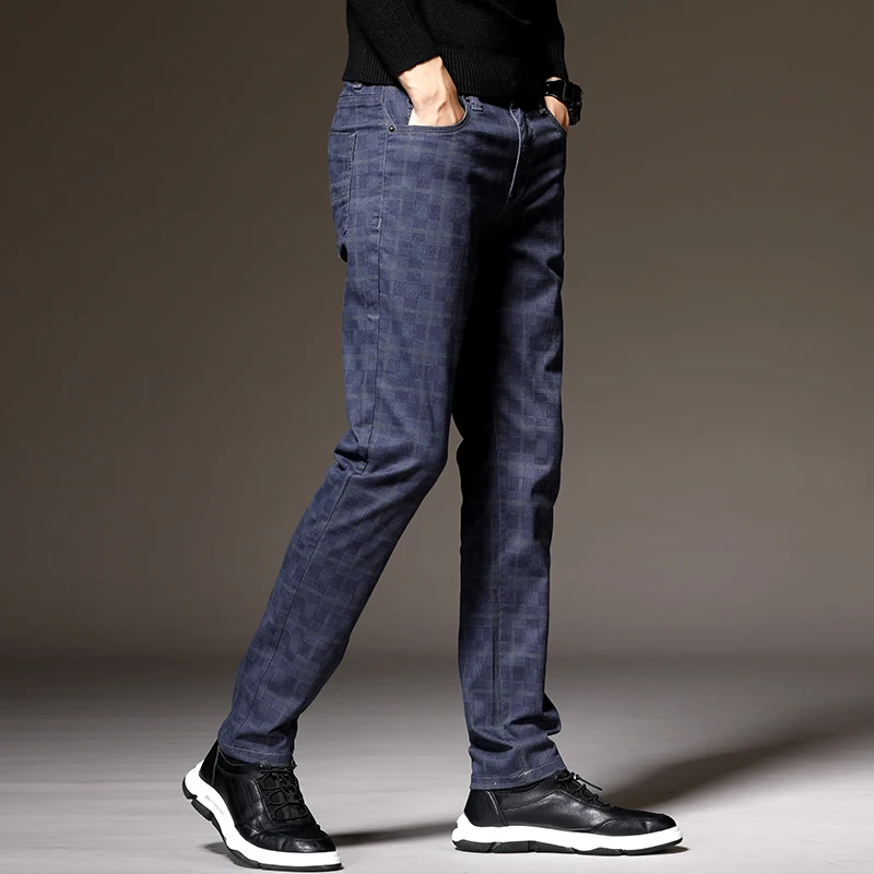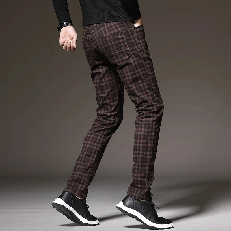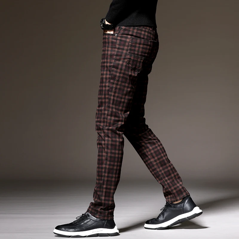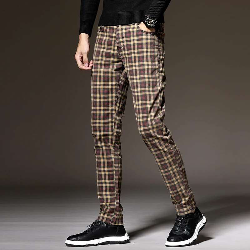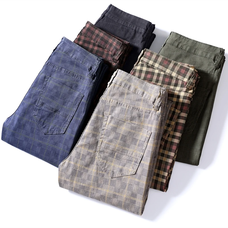 Классические клетчатые повседневные брюки, 6 цветов, весна 2021, брендовая одежда, высококачественные хлопковые Стрейчевые модные облегающие брюки для молодых мужчин