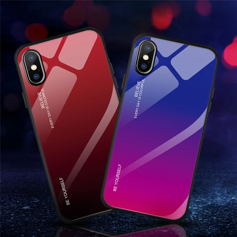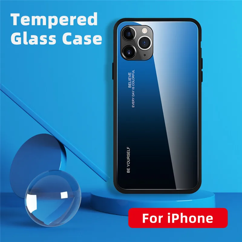 Чехол из закаленного стекла с градиентной окраской для iPhone 11 12...