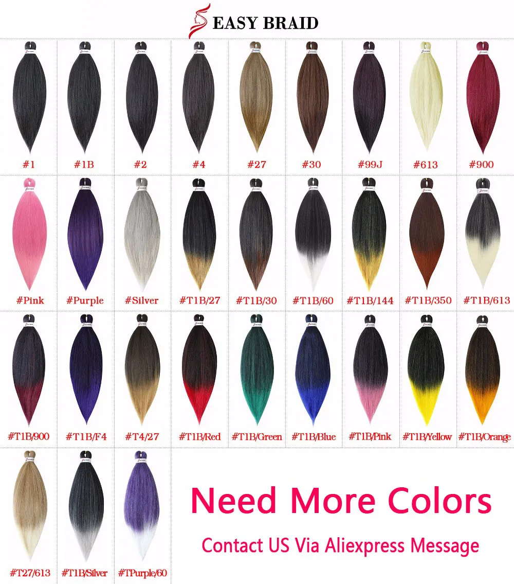 Так много цветов вы можете выбрать свободноПредварительно растягивающиеся плетеные волосы изготовлены из высококачественного низкотемпературного огнеупорного синтетического волокна с текстурой Яки.