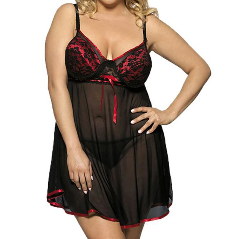 Женское кружевное Ночное платье большого размера плюс с глубоким v-образным вырезом, сексуальное ночное белье
