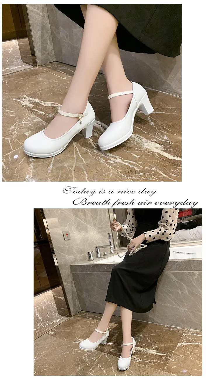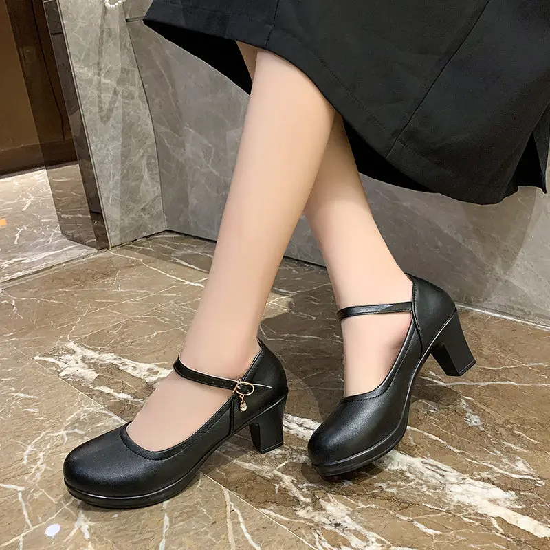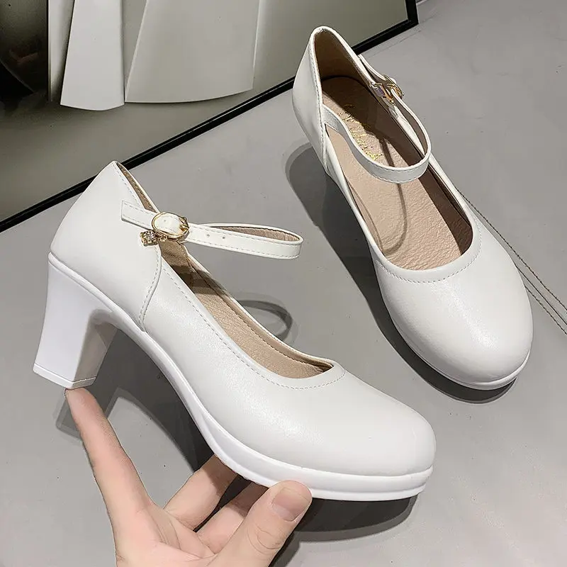 Женские туфли-лодочки на платформе и высоком квадратном каблуке; Сезон весна-лето; Туфли с закрытым носком и ремешком с пряжкой; Женские туфли с круглым носком на высоком каблуке