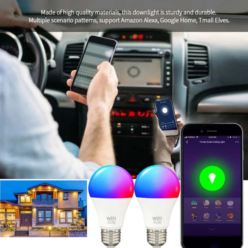 Лампочка E27 B22 для умного дома с Wi-Fi и регулировкой яркости, 9 Вт, RGBCW светильник лампочка с голосовым управлением для Alexa Google Home через Smart Life Alice