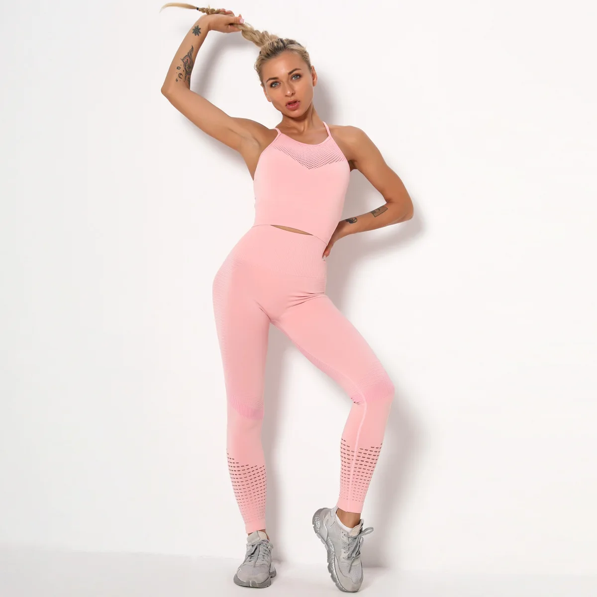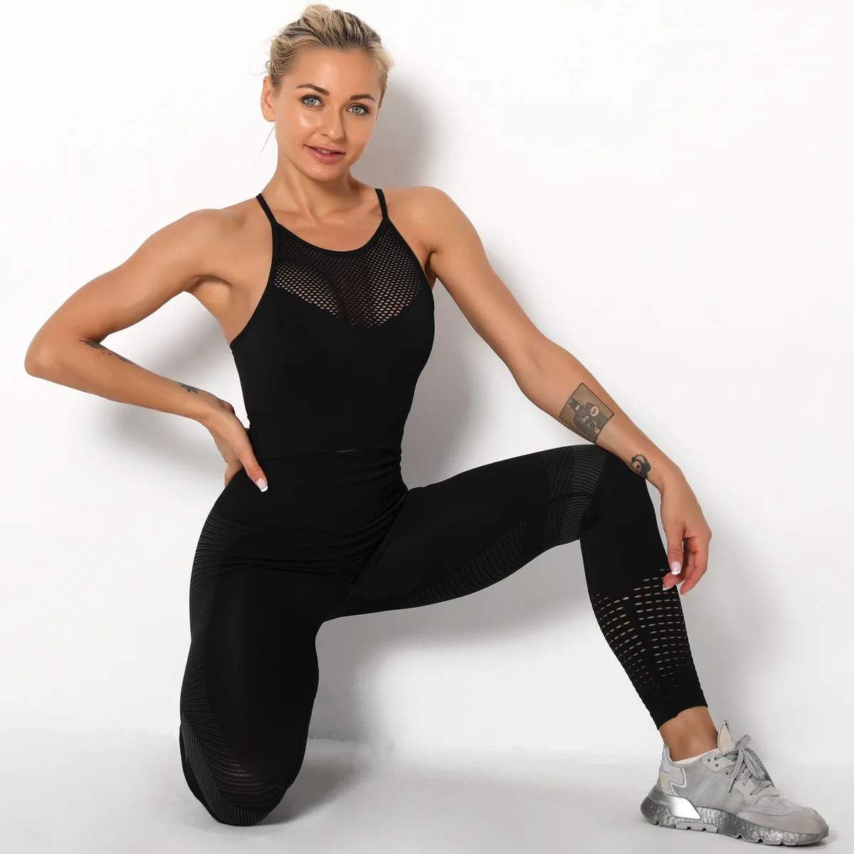Женский комплект для йоги ATHVOTAR, бесшовный спортивный костюм, одежда для спортзала, одежда для бега, топ для йоги + леггинсы, Женский бесшовный спортивный костюм