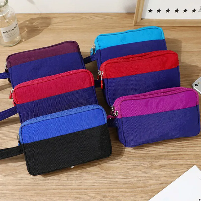 LITTHING Модные женские кошельки, 3 однотонных Слои холст телефона короткий бумажник три-Слои для монет на молнии-карты ключ кошелек сумка для макияжа