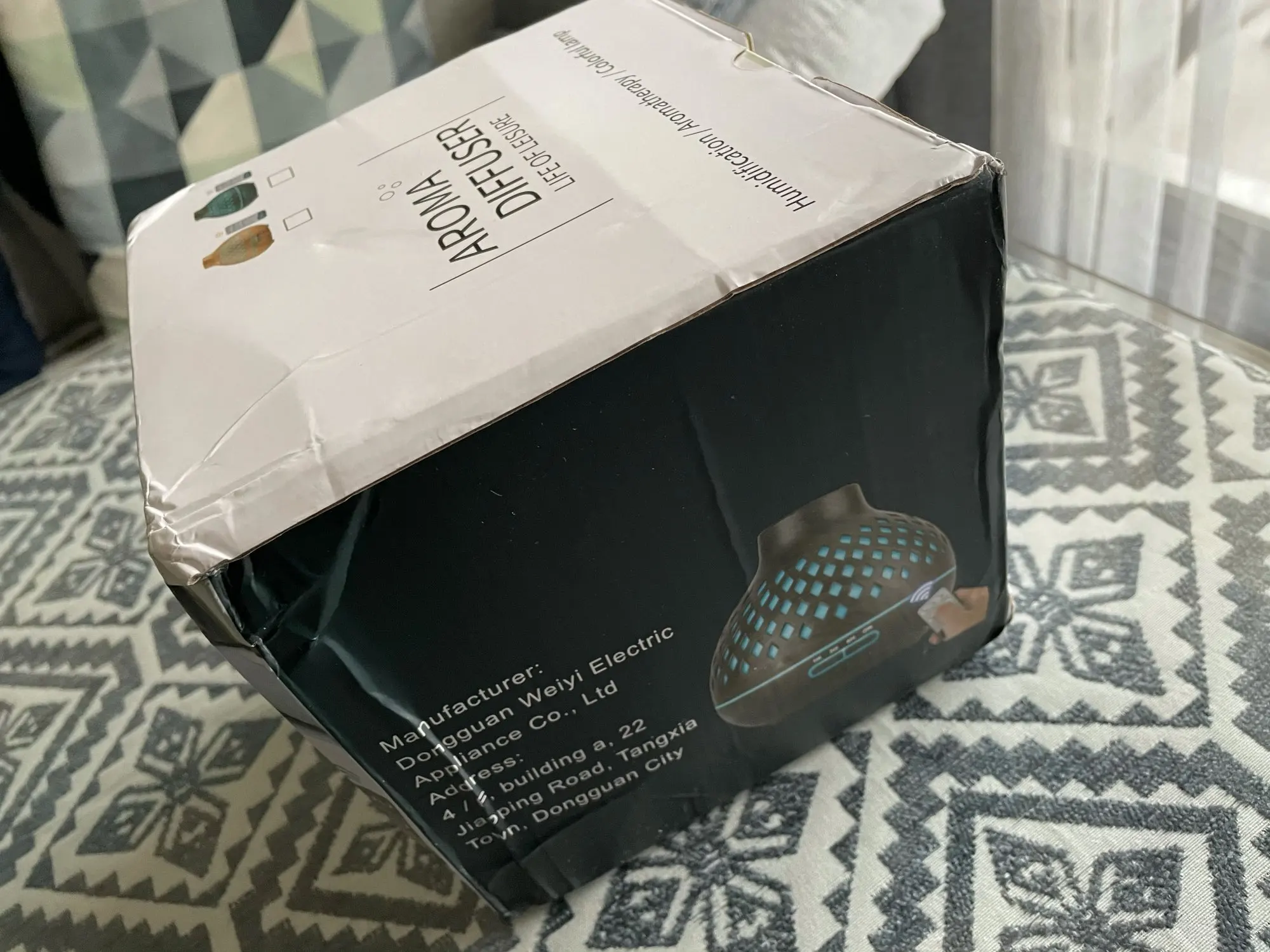 Шло достаточно долго, коробка пришла вся помятая, но сам увлажнитель цел