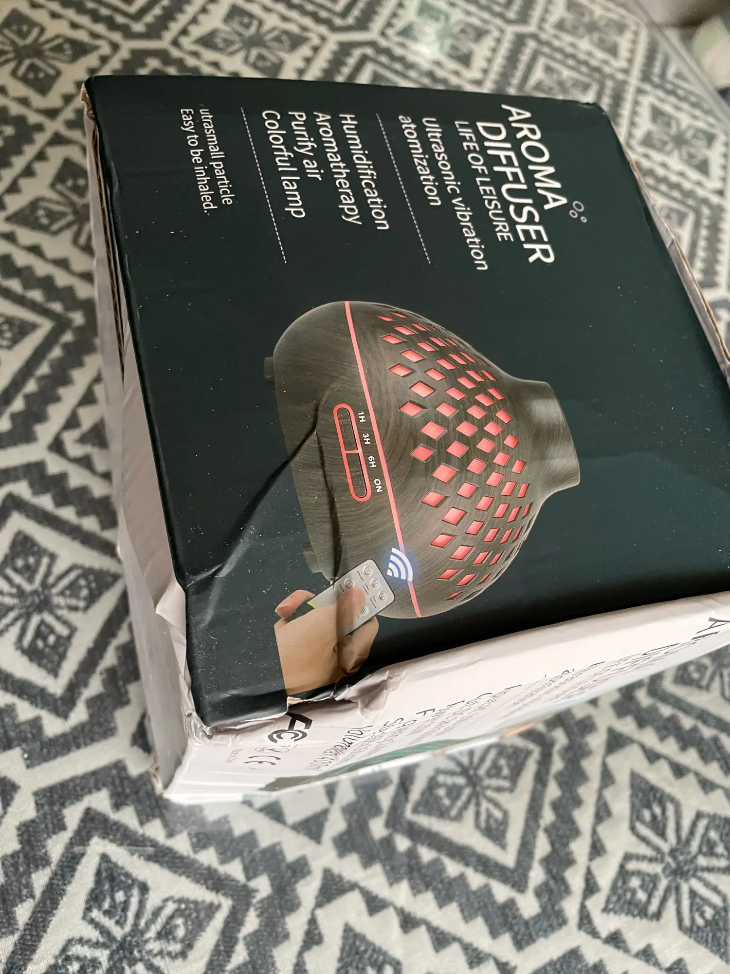 Я прибываю очень быстро, всего за 9 дней с момента заказа. Он принес его агентством. Пузырчатая упаковка, коробка прибыла немного раздавленной. Содержит: увлажнитель, Штекерный кабель, стакан, пульт дистанционного управления (без батареи) и инструкции по эксплуатации. Продукт очень хорошего качества. Как указано в описании: увлажнение ультразвуком, программирование для работы 1, 3 или 6 часов, постоянный свет с более или менее интенсивностью или изменением. Настоятельно рекомендуется продавец