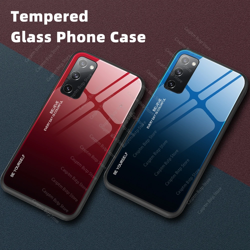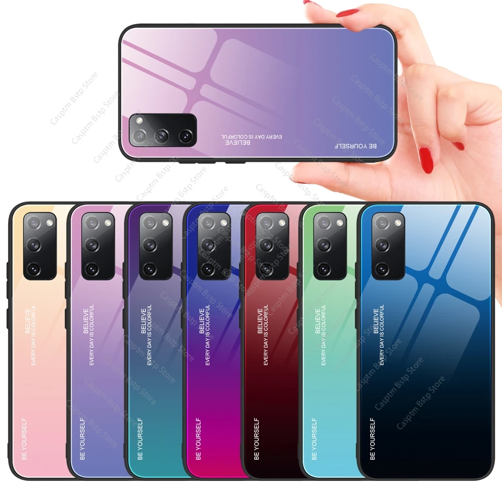 Чехол с градиентным закаленным стеклом для Samsung S20 FE A51 A71 A...