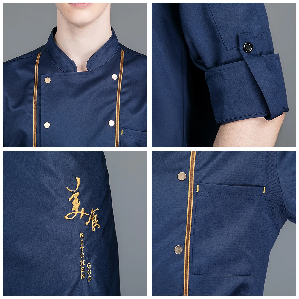 Новинка, двубортная форма шеф-повара с длинными рукавами, унисекс, для приготовления пищи, выпечки, Комбинезоны для ресторана, отеля, кафе, парикмахерской, официанта, куртка