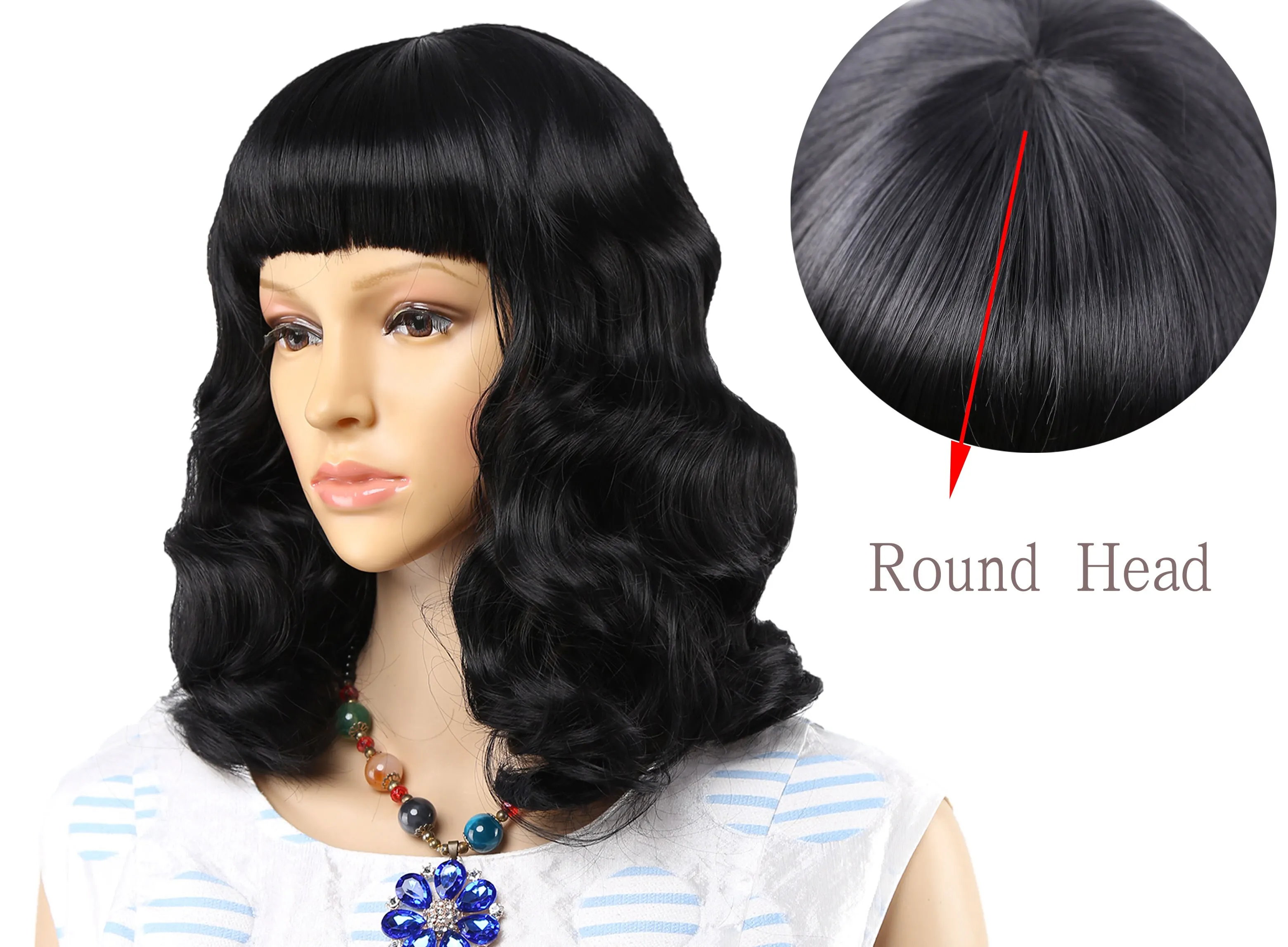 Короткие волнистые синтетические парики в стиле ретро с вьющимися челками черные винтажные парики рокабилли для женщин для ежедневноговечернегоКосплея
