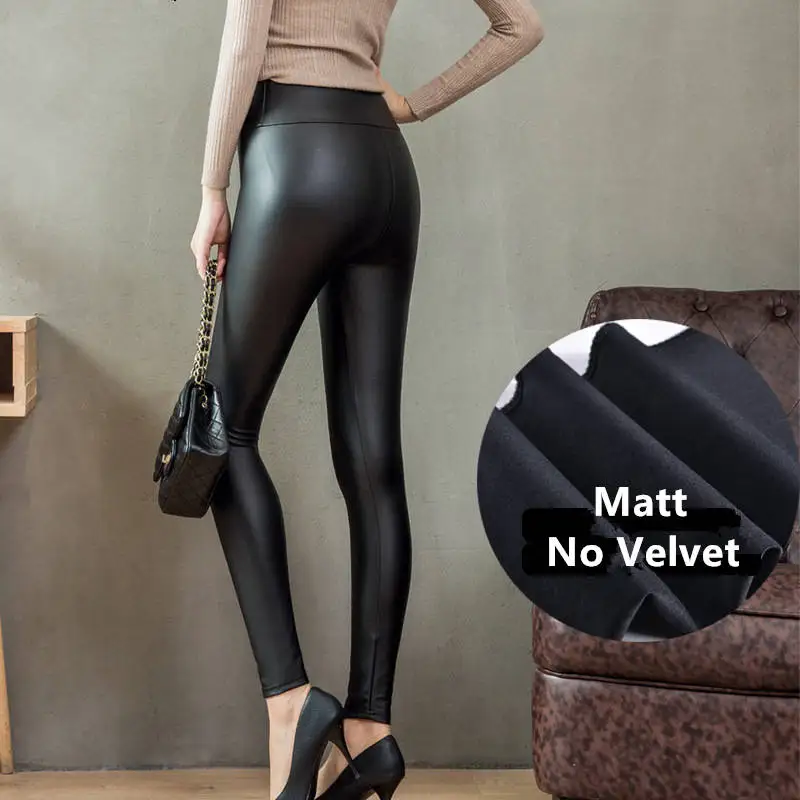 5XL Большие размеры, кожаные леггинсы с высокой талией для женщин, легкие и матовые тонкие и толстые сексуальные обтягивающие леггинсы из искусственной кожи, тонкие длинные штаны C6743