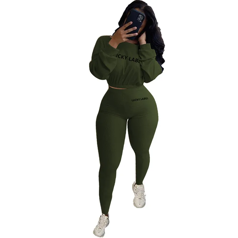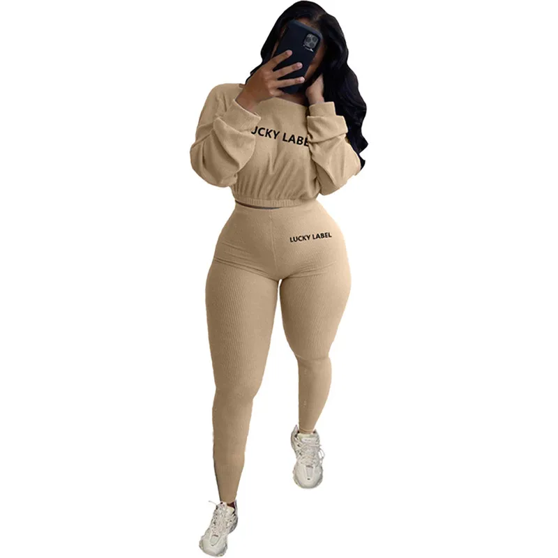 Счастливая этикетка верхняя одежда из двух частей для женщин пикантные спортивные костюмы одинаковые комплекты с вышивкой с открытыми плечами одежда; Оптовая продажа; Прямая поставка;