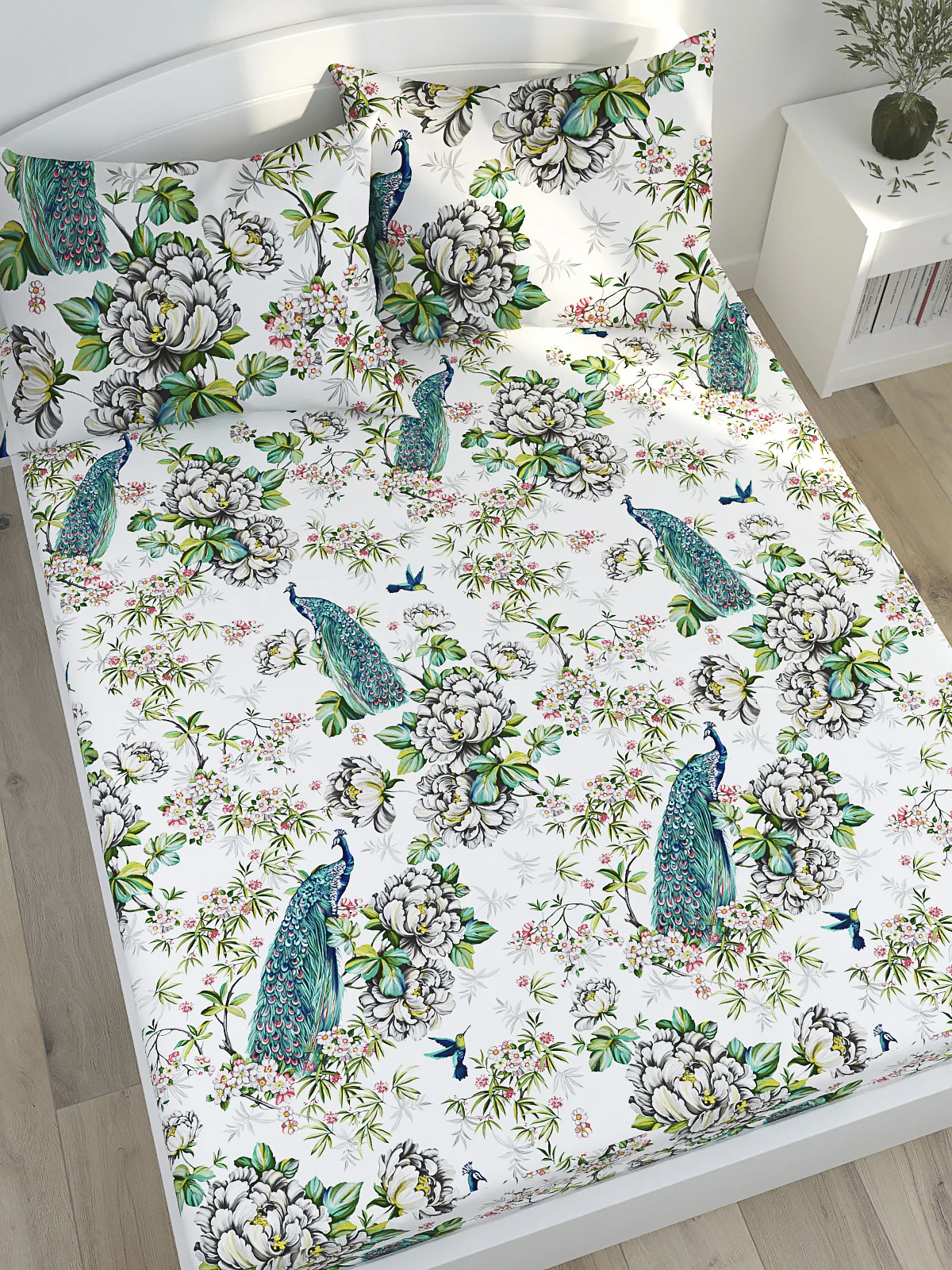 Натяжная простыня на резинке Cказка "Павлины" 90*200 120*200 140*200 160*200 180*200 100% хлопок