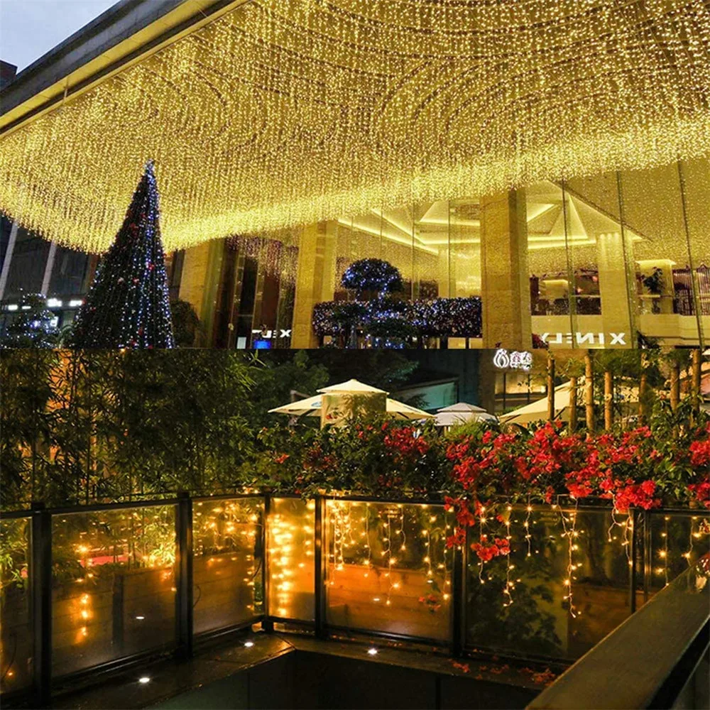 3 м5 м Солнечный оконный занавес сосулька светильник 128265 светодиодов сосулька Рождественский струнный светильник для праздника Рождественские Свадебные украшения