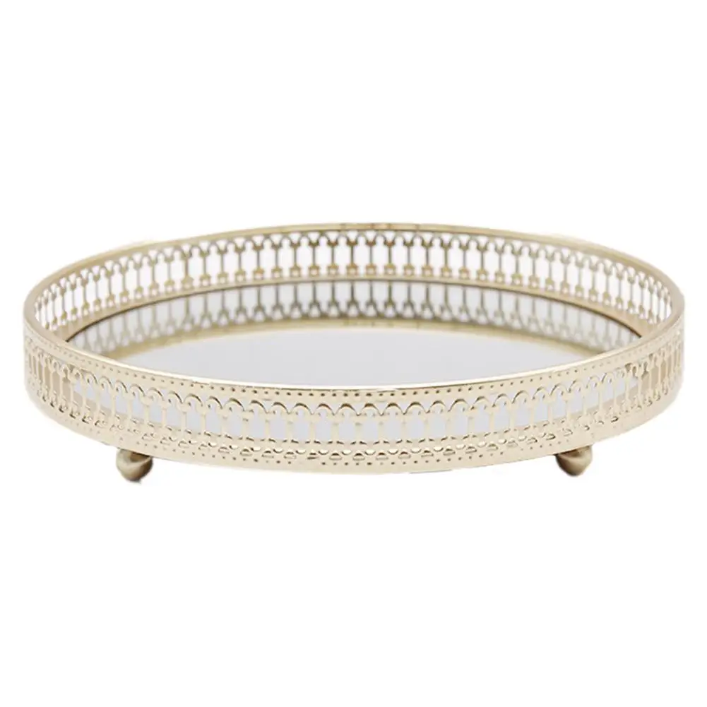 ОсобенностиS:1. Премиум ремесло: Зеркальный лоток отличается высококачественной ручной сваркой из кованого железа, позолоченной металлической краской, пластиковой обработкой распылением, яркими цветами, уникальной формой, элегантным внешним видом.2. Идеальное Украшение: ретро-стиль делает зеркальный поднос подходящим для разных стилей украшения, поэтому это не просто Простая подставка, но и элегантное украшение для дома.3. Прекрасный внешний вид: Зеркальный лоток используется для 2 целей, то есть лоток для хранения также можно использовать как зеркало, а поверхность зеркала прозрачная и красивая.4. Идеально подходит для использования: Зеркальный лоток имеет конструкцию кронштейна для предотвращения попадания влаги.5. Широкое применение: декоративный поднос сочетает в себе красоту и практичность. А многослойное покрытие зеркала в три раза прозрачнее, чем у обычного зеркала. В зеркальном лотке можно хранить украшения, духи, серьги и другие мелкие предметы.Характеристики:Название: Зеркало для хранения ювелирных изделийМатериал: железо + стеклоРазмер: около 25*5 см/9,84 * дюйма