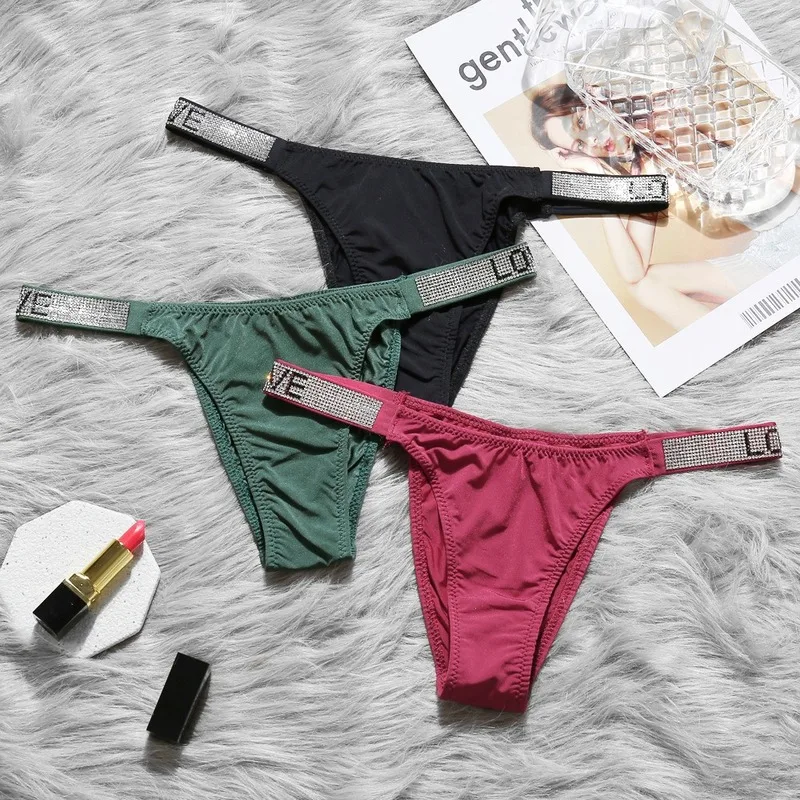 Женское нижнее белье из ледяного шелка со стразами, стринги с надпи...