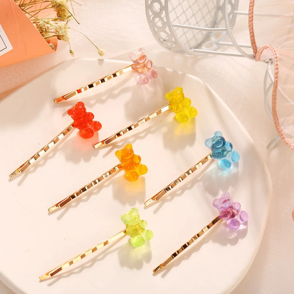 Заколки для волос женские с медвежонком, 6 карамельных мишек, цветн...